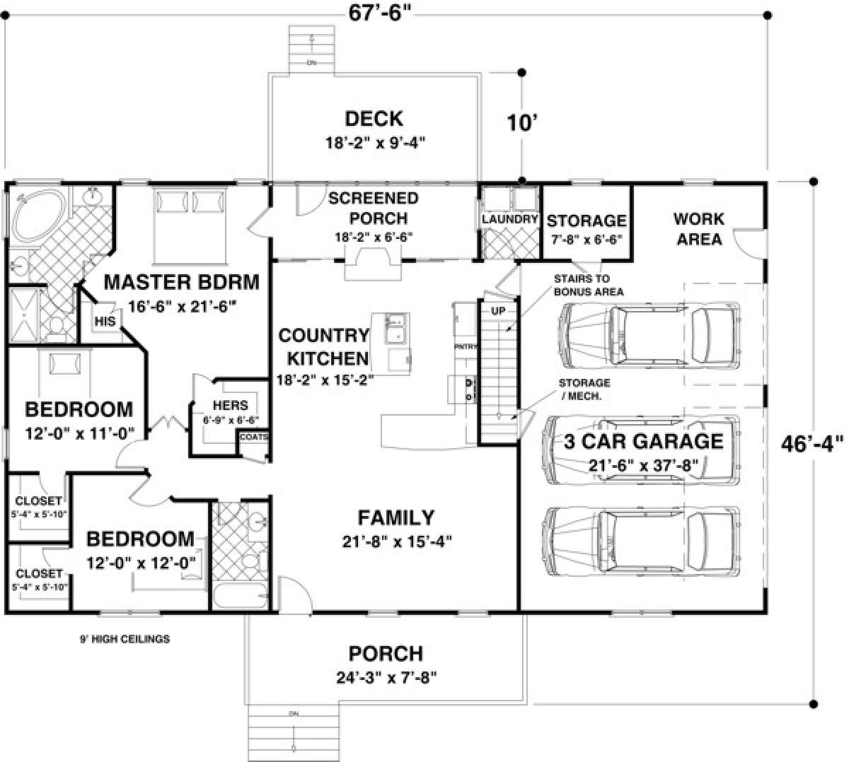 Проект одноэтажного дома с гаражом на три и более машин в стиле Ранчо S5-148 (036-00182)