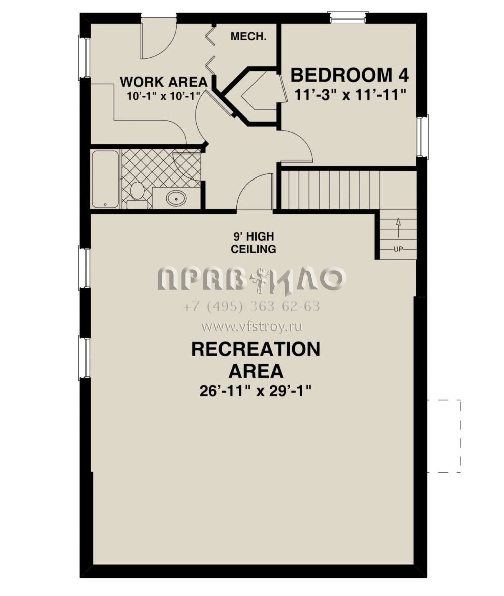 S5-148 (036-00271) Это иностранный проект, для которого требуется адаптация под нормы, действующие в Российской Федерации. Вы видите проект дома в стиле Ранчо. В этом доме сочетаются черты сельской постройки и аскетичность лофта. Внутри жильцы смогут проводить время с максимальным комфортом. Обратим внимание, что сейчас на планировках все размеры представлены в футах. Для перевода в метры вам необходимо значение в футах умножить на 0,3048.