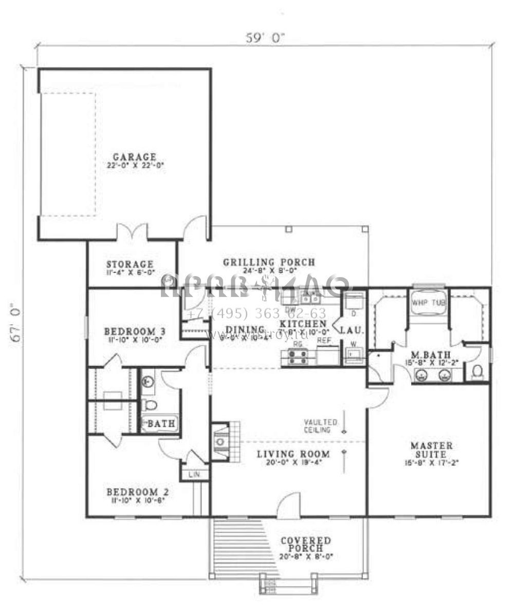 Проект одноэтажного дома с гаражом на две машины в стиле Ранчо S5-148 (110-00423)