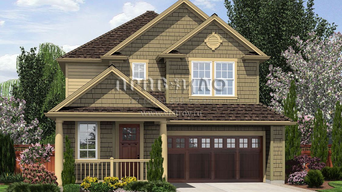 Проект двухэтажного дома с гаражом на две машины в американском стиле S5-148 (2559-00767)