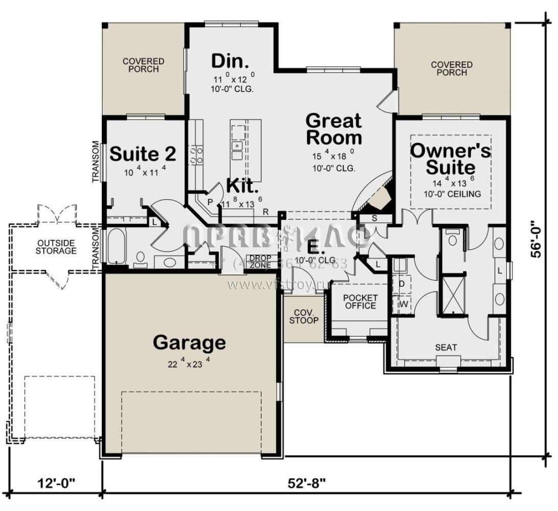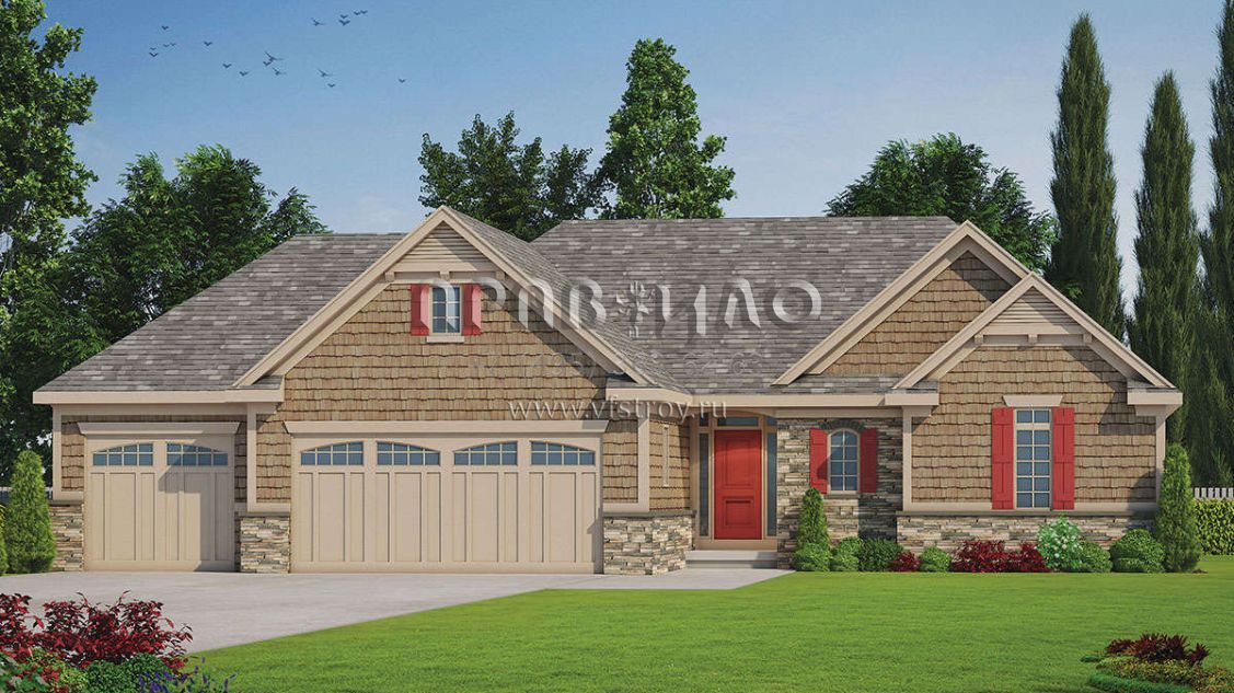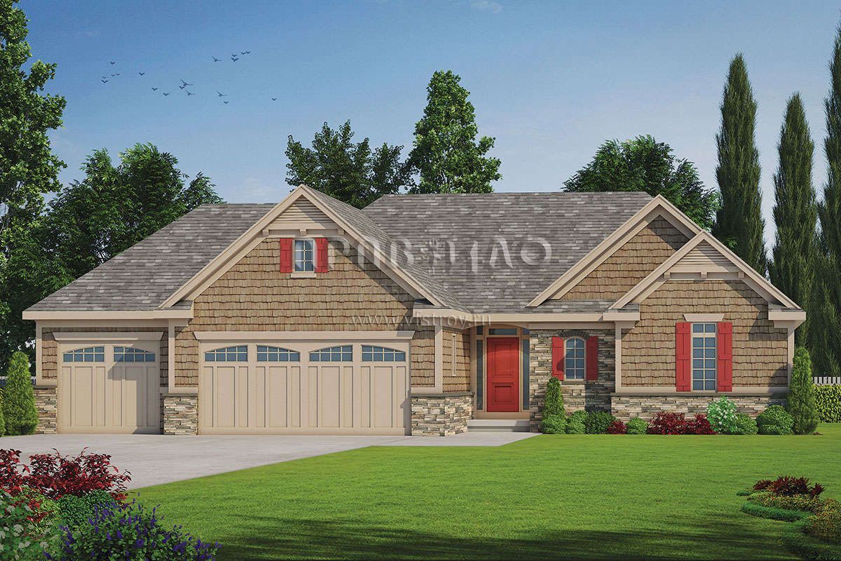 Проект одноэтажного дома с гаражом на две машины в американском стиле S5-148 (402-01584)