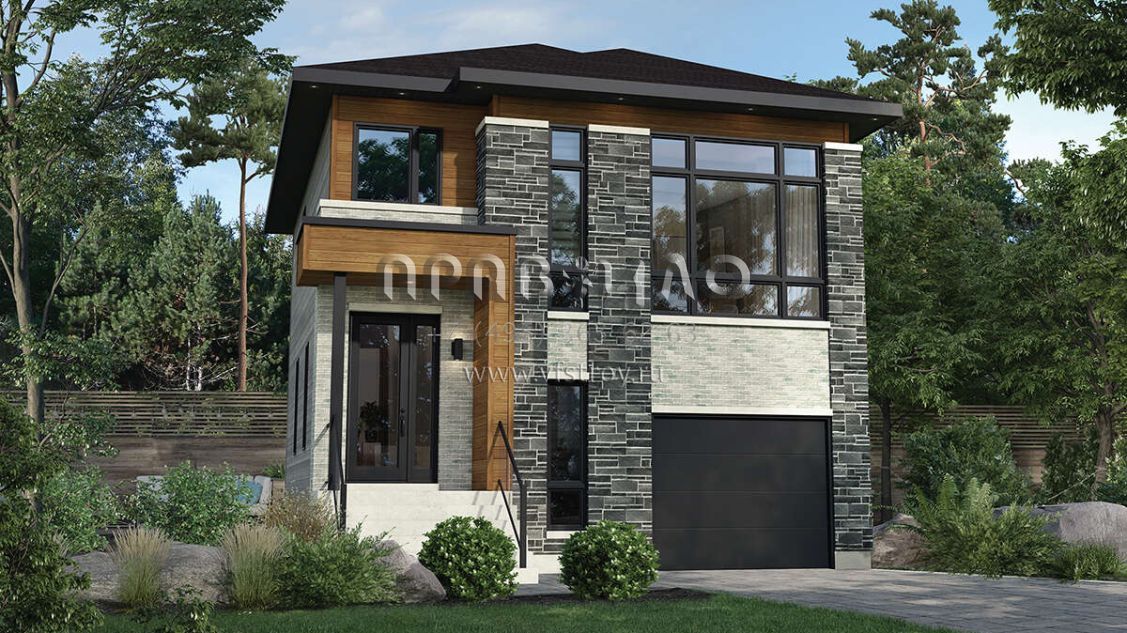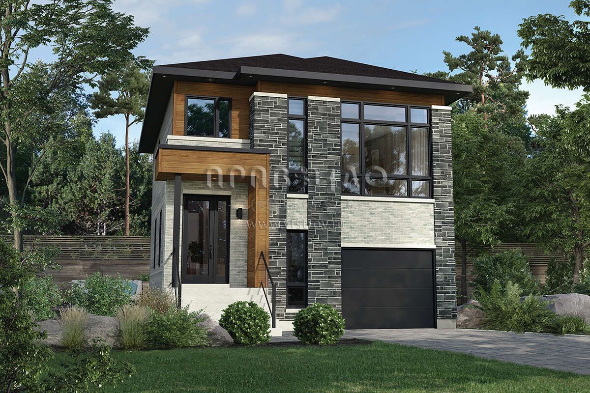 Проект двухэтажного дома с гаражом на одну машину в современном стиле S5-148 (6146-00537)