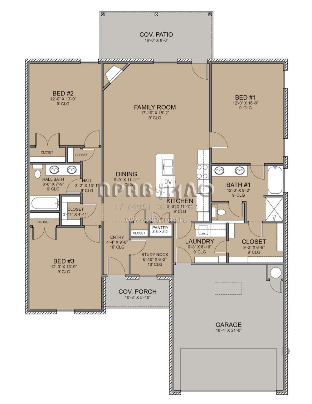 Проект одноэтажного дома с гаражом на две машины в стиле Ранчо S5-148 (677-00027)