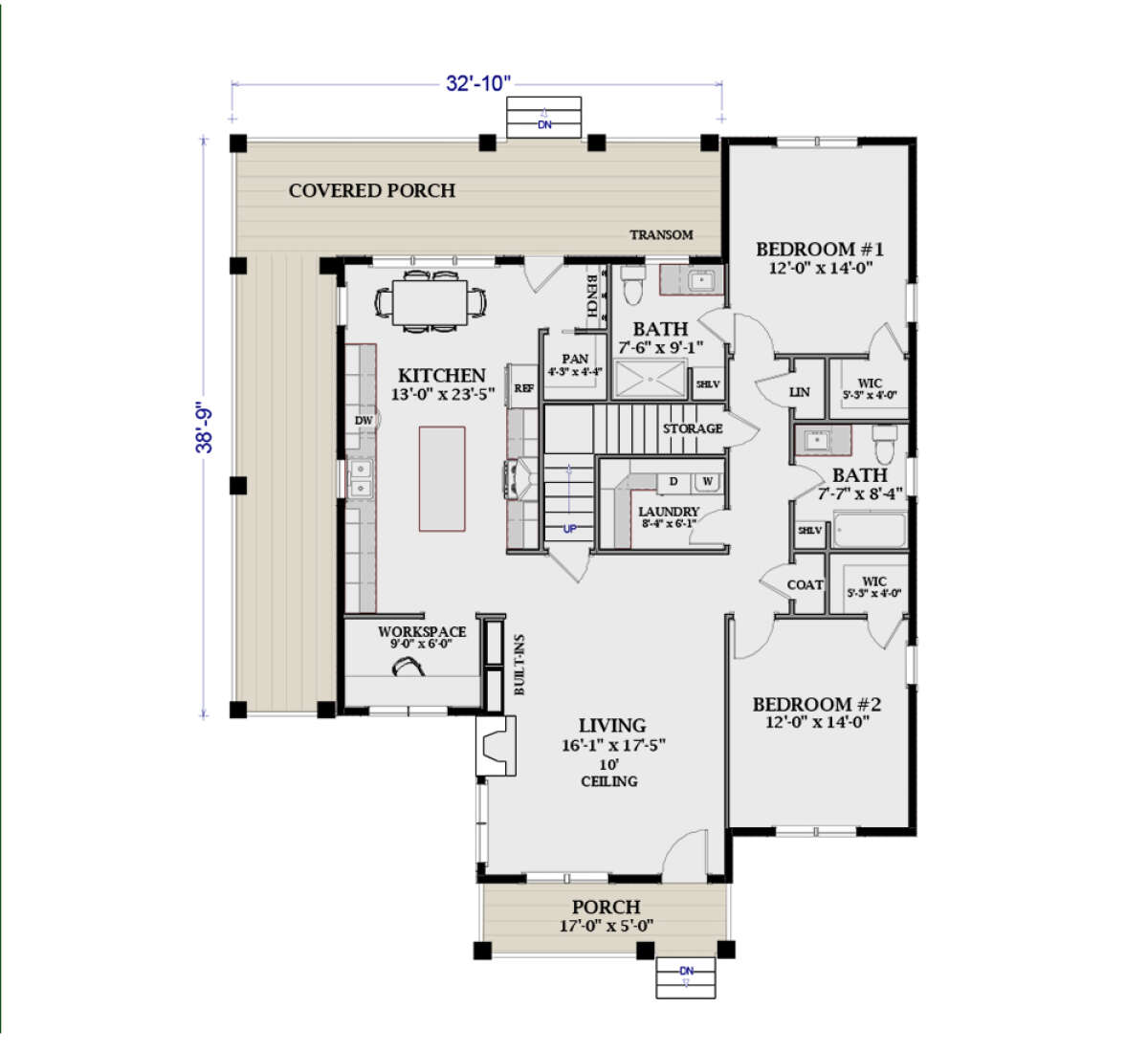 S5-148 (6849-00144) Это иностранный проект, для которого требуется адаптация под нормы, действующие в Российской Федерации. Вы видите проект дома в современном стиле. В этом доме сочетаются черты сельской постройки и аскетичность лофта. Внутри жильцы смогут проводить время с максимальным комфортом. Обратим внимание, что сейчас на планировках все размеры представлены в футах. Для перевода в метры вам необходимо значение в футах умножить на 0,3048.
