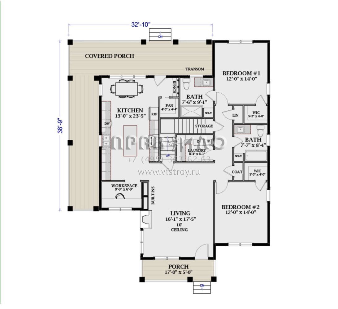 Поскольку этот проект разрабатывался иностранными архитекторами, для строительства дома требуется переработка проекта под действующие в России нормы. Данные визуализации проекта представлены для ознакомления с концепцией проекта. Проект разработан американским архитектурным бюро и представлен America's Best House Plans.