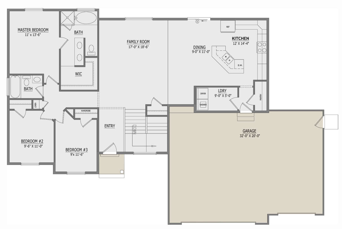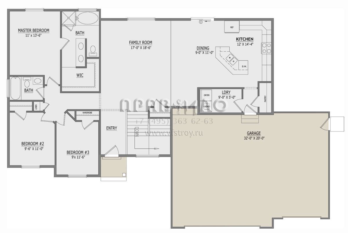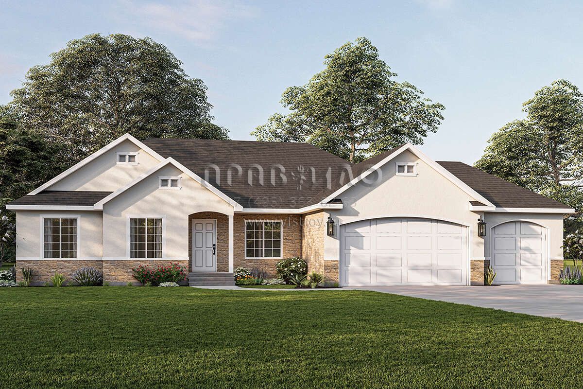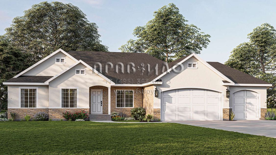 Проект одноэтажного дома с гаражом на три и более машин в стиле Ранчо S5-148 (8768-00035)