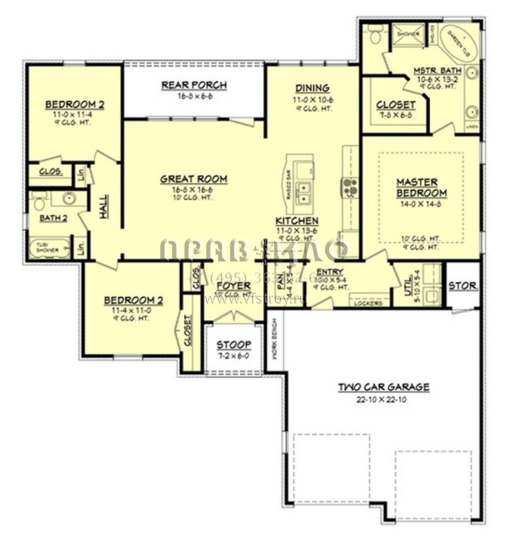 Проект одноэтажного дома с гаражом на две машины в английском стиле S5-149 (041-00062)