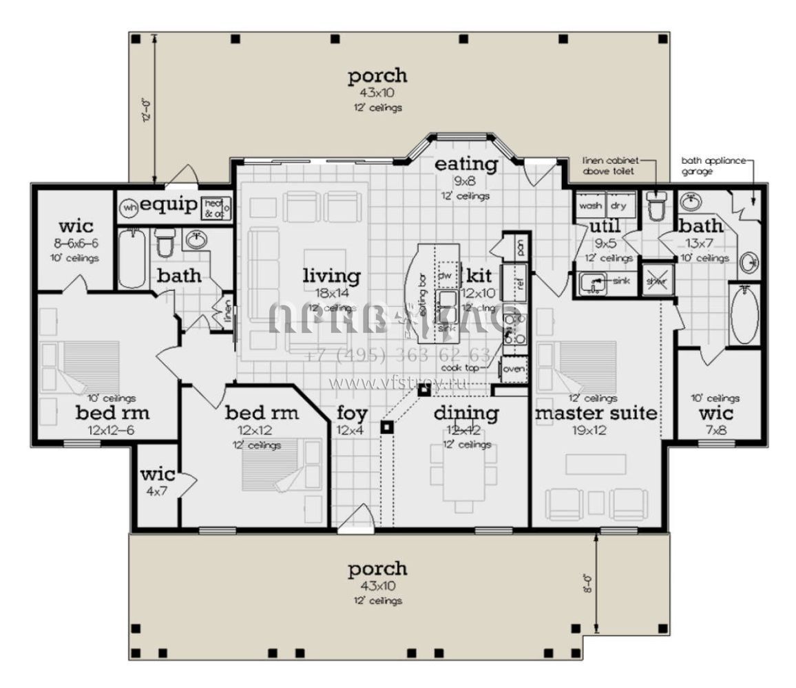 Поскольку этот проект разрабатывался иностранными архитекторами, для строительства дома требуется переработка проекта под действующие в России нормы. Данные визуализации проекта представлены для ознакомления с концепцией проекта. Проект разработан американским архитектурным бюро и представлен America's Best House Plans.