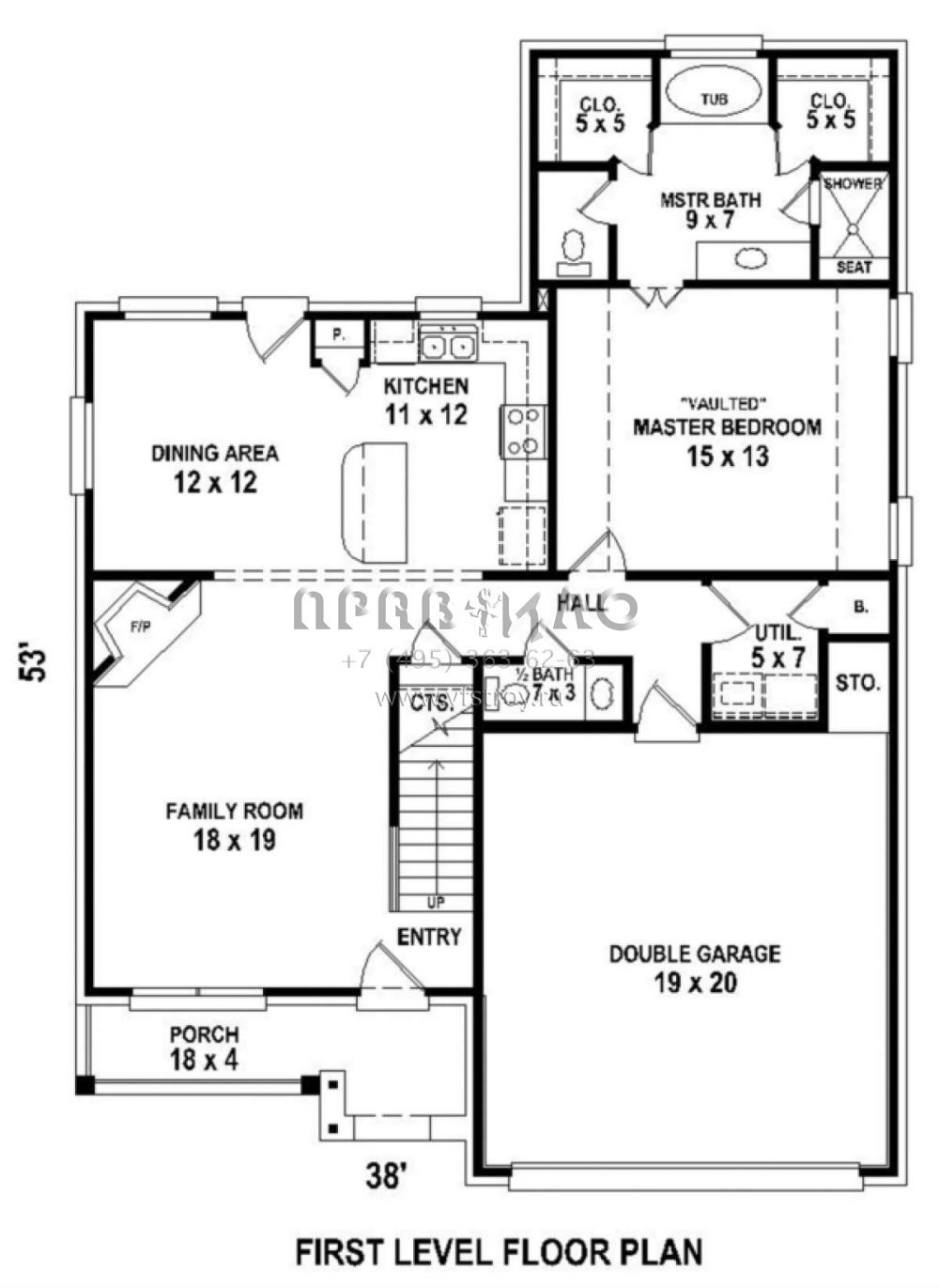 Проект двухэтажного дома с гаражом на две машины в стиле Ранчо S5-149 (053-00467)