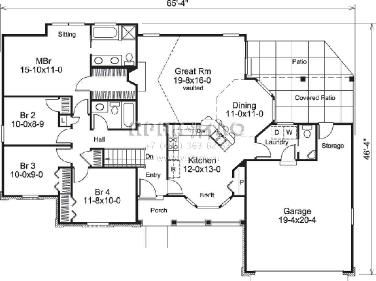 Проект одноэтажного дома с гаражом на две машины в стиле Ранчо S5-149 (5633-00165)