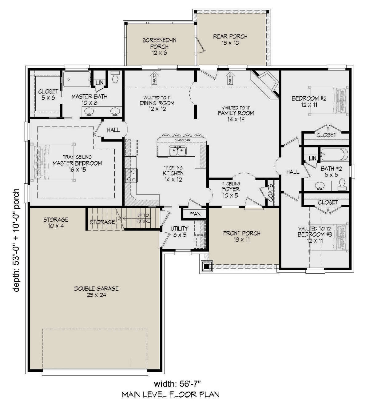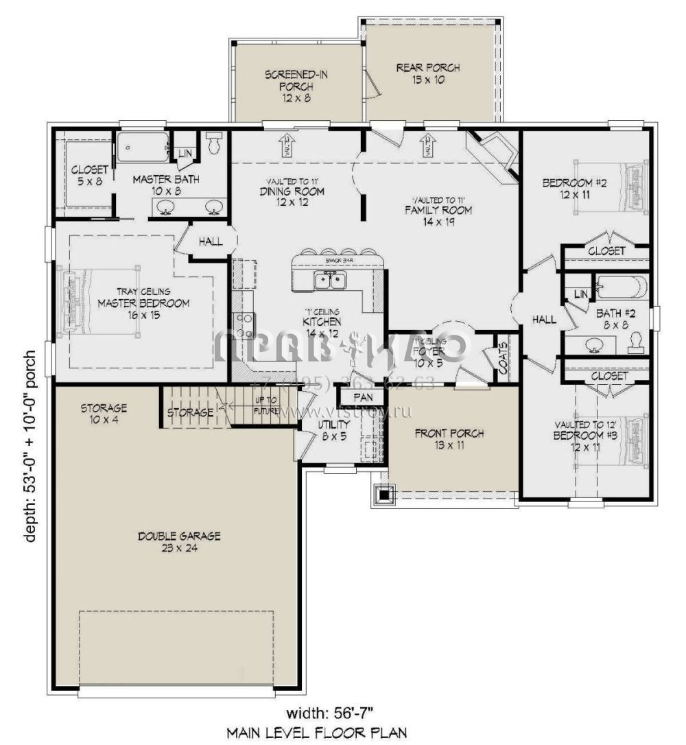 S5-149 (940-00503) Это иностранный проект, для которого требуется адаптация под нормы, действующие в Российской Федерации. Вы видите проект дома в стиле Ранчо. В этом доме сочетаются черты сельской постройки и аскетичность лофта. Внутри жильцы смогут проводить время с максимальным комфортом. Обратим внимание, что сейчас на планировках все размеры представлены в футах. Для перевода в метры вам необходимо значение в футах умножить на 0,3048.
