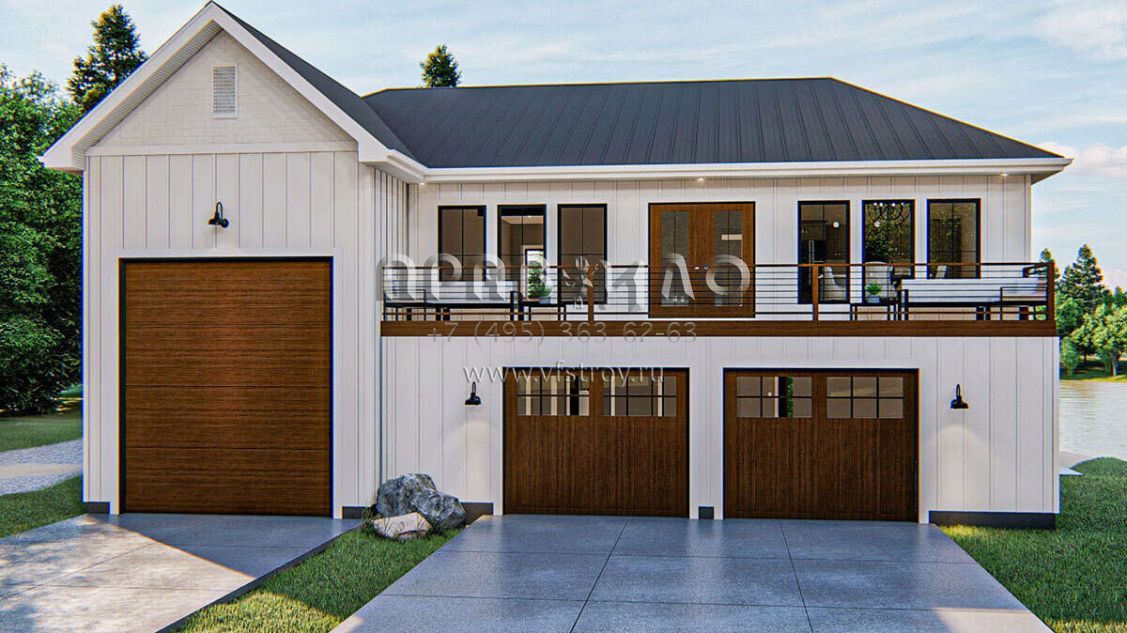 Проект двухэтажного дома с гаражом на три и более машин в современном стиле S5-149 (963-00411)