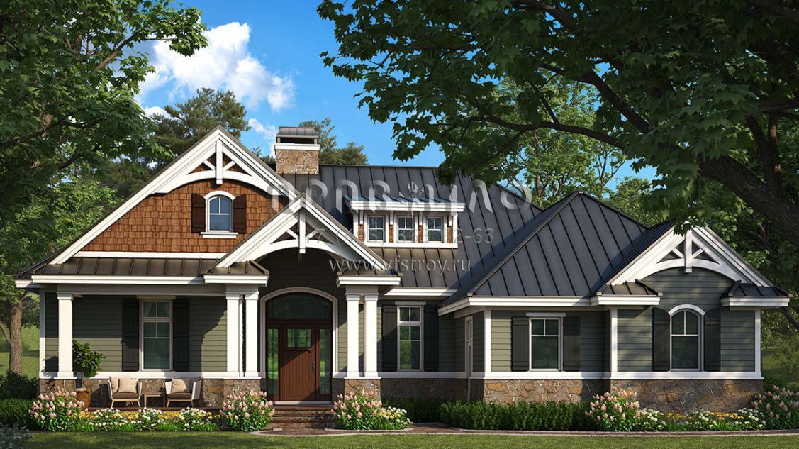 Проект одноэтажного дома с гаражом на две машины в американском стиле S5-150 (1018-00282)