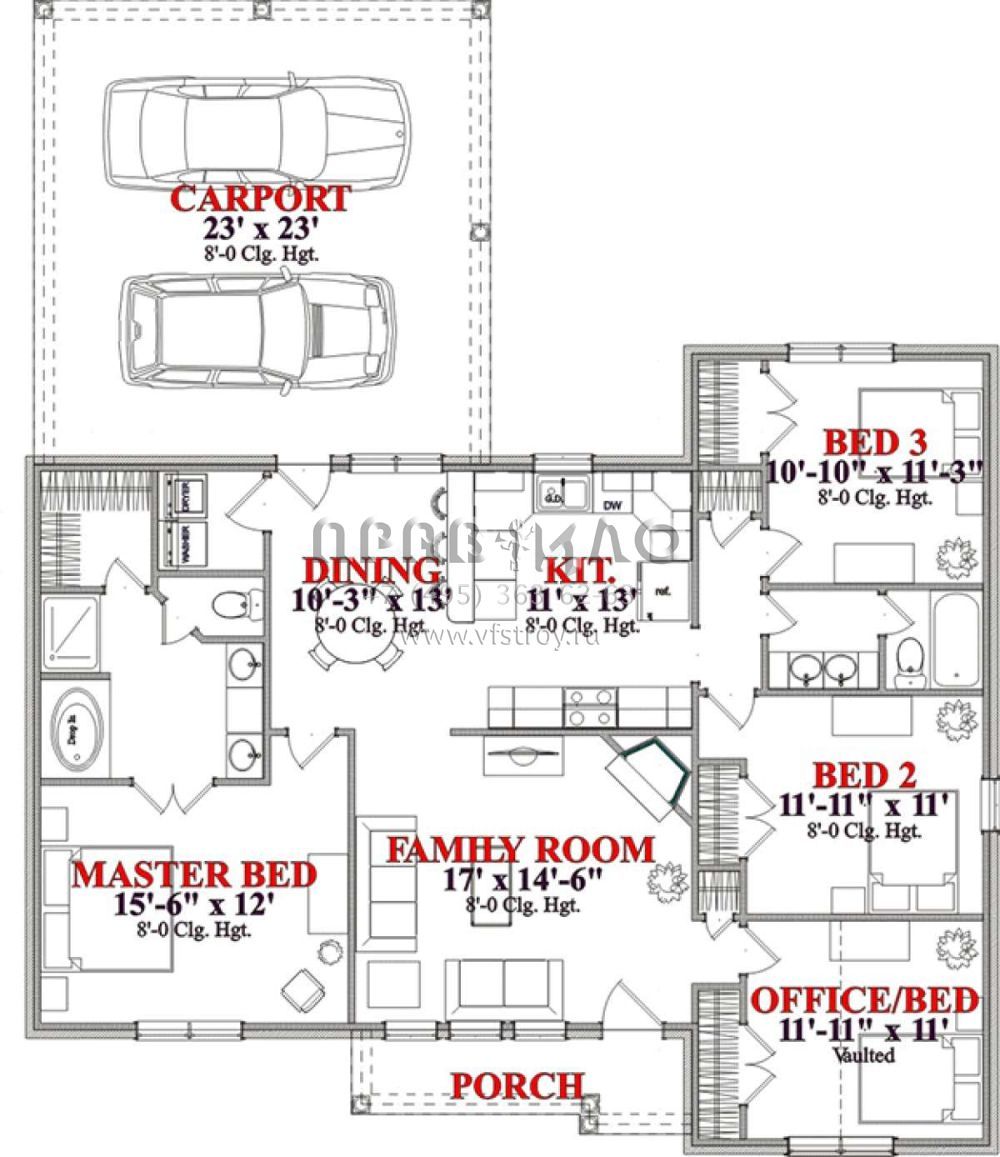 S5-150 (1070-00087) Это иностранный проект, для которого требуется адаптация под нормы, действующие в Российской Федерации. Вы видите проект дома в стиле Ранчо. В этом доме сочетаются черты сельской постройки и аскетичность лофта. Внутри жильцы смогут проводить время с максимальным комфортом. Обратим внимание, что сейчас на планировках все размеры представлены в футах. Для перевода в метры вам необходимо значение в футах умножить на 0,3048.