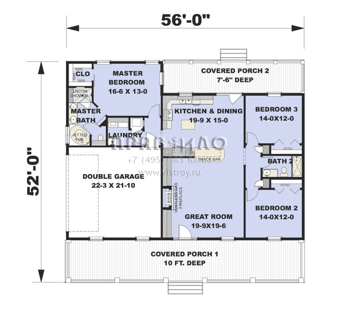 Проект одноэтажного дома с гаражом на две машины в стиле Ранчо S5-150 (1776-00105)