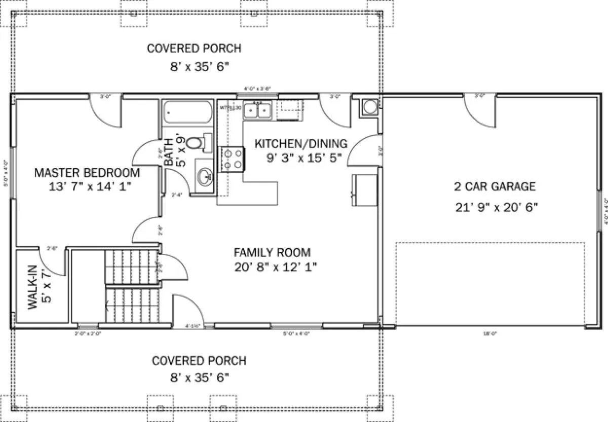 Проект двухэтажного дома с гаражом на две машины в стиле Ранчо S5-150 (2802-00020)
