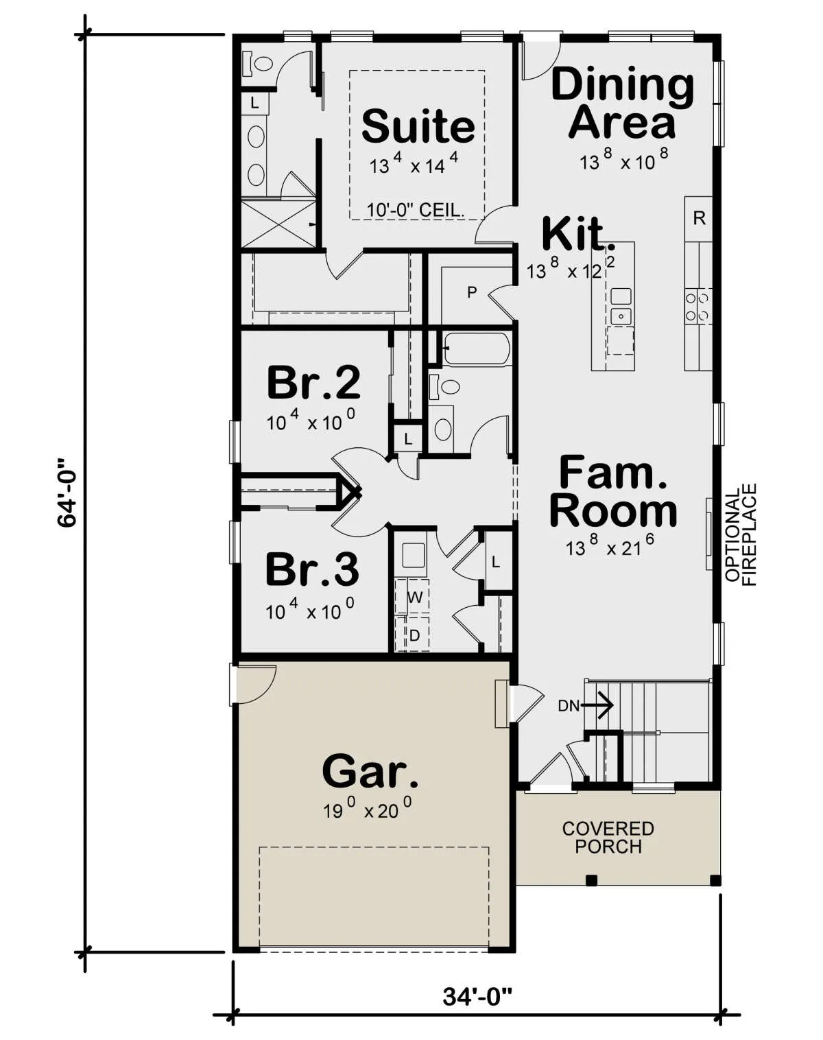 S5-150 (402-01722) Это иностранный проект, для которого требуется адаптация под нормы, действующие в Российской Федерации. Вы видите проект дома в стиле Ранчо. В этом доме сочетаются черты сельской постройки и аскетичность лофта. Внутри жильцы смогут проводить время с максимальным комфортом. Обратим внимание, что сейчас на планировках все размеры представлены в футах. Для перевода в метры вам необходимо значение в футах умножить на 0,3048.