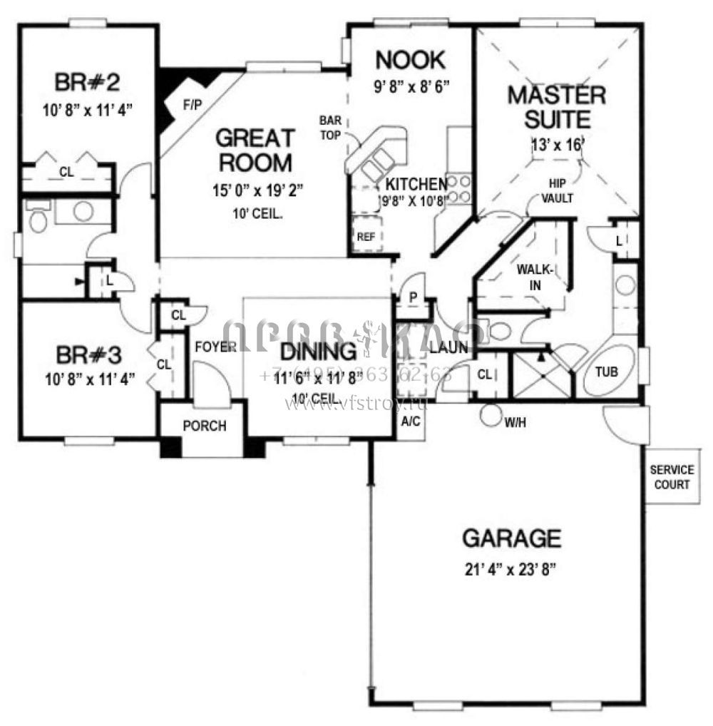 Проект одноэтажного дома с гаражом на две машины в стиле Ранчо S5-150 (4766-00015)