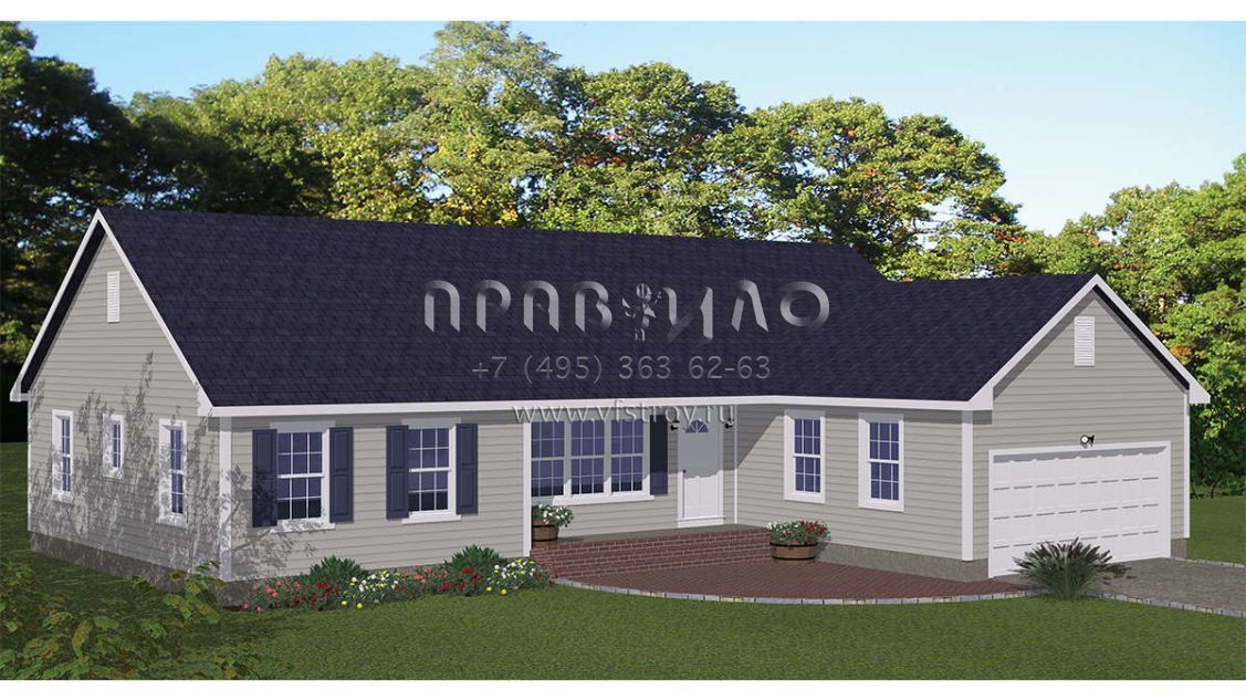 Проект одноэтажного дома с гаражом на две машины в стиле Ранчо S5-150 (526-00061)