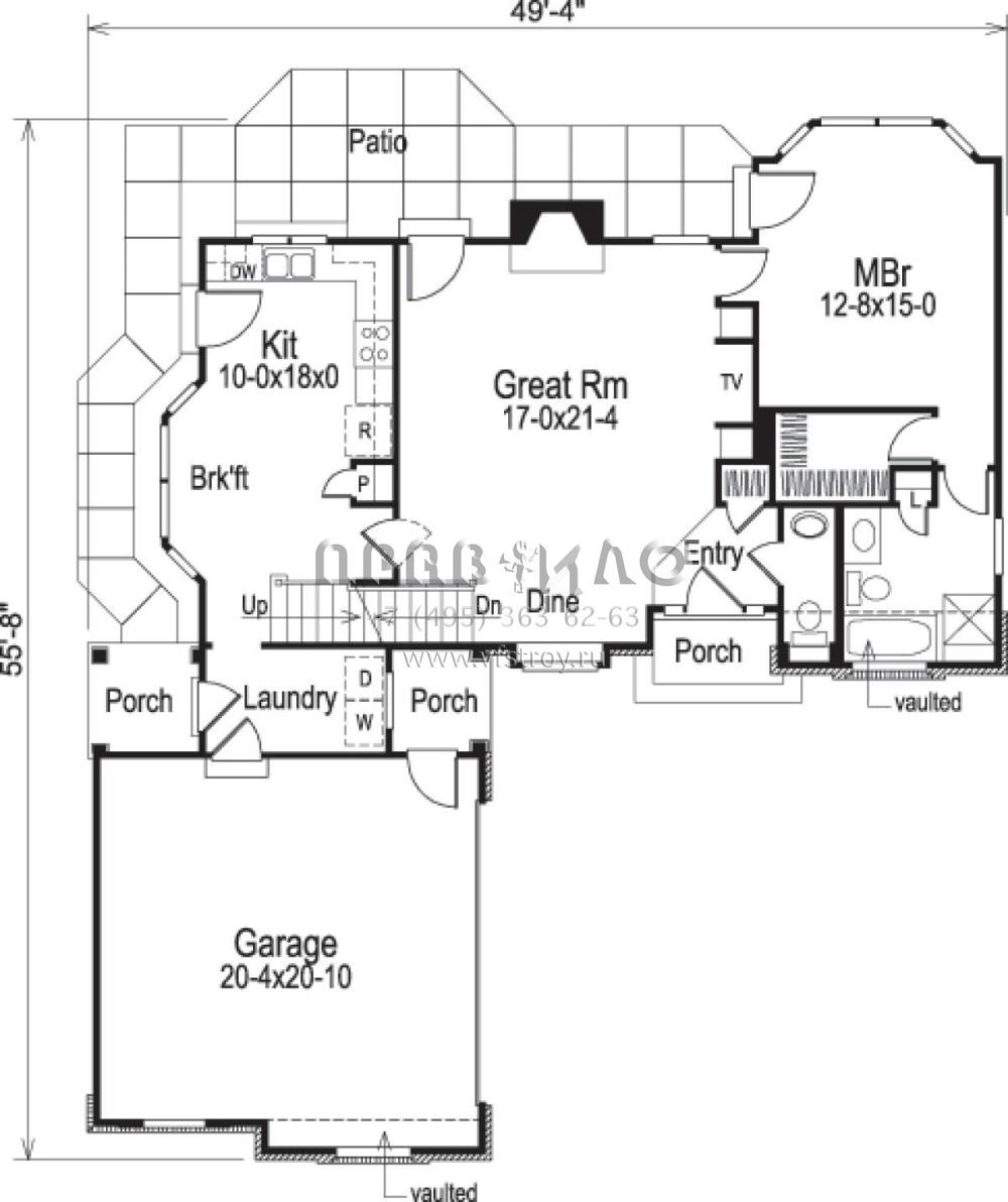 Проект двухэтажного дома с гаражом на две машины в стиле Ранчо S5-150 (5633-00052)