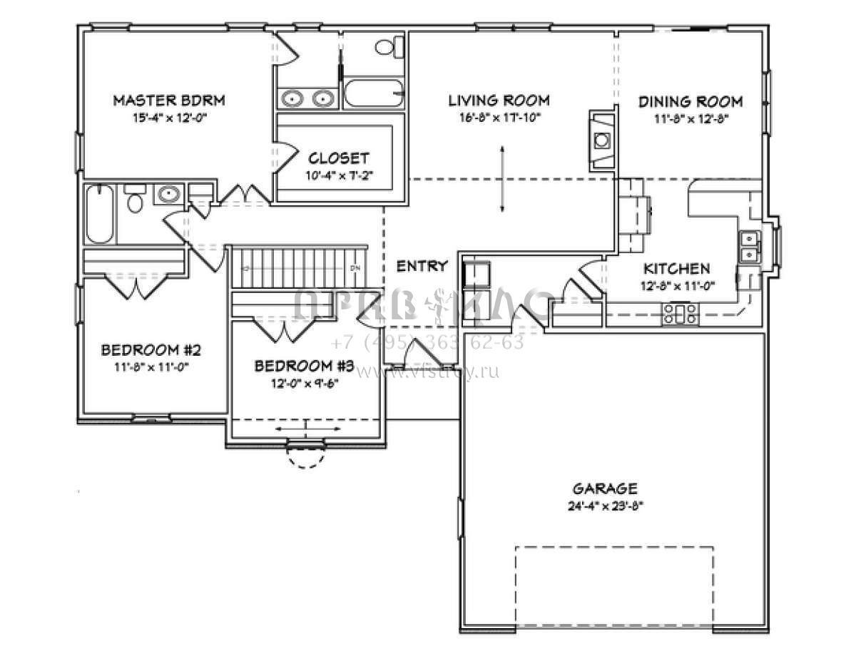 Проект одноэтажного дома с гаражом на две машины в стиле Ранчо S5-150 (849-00012)