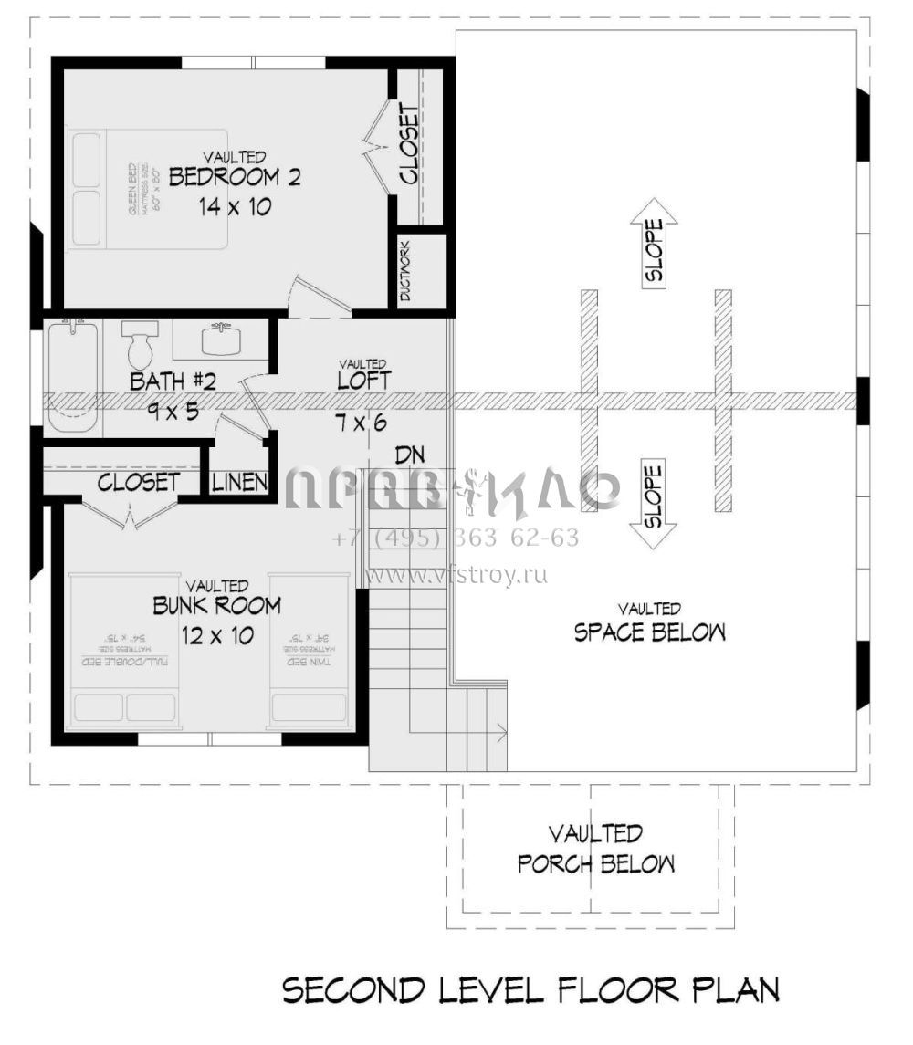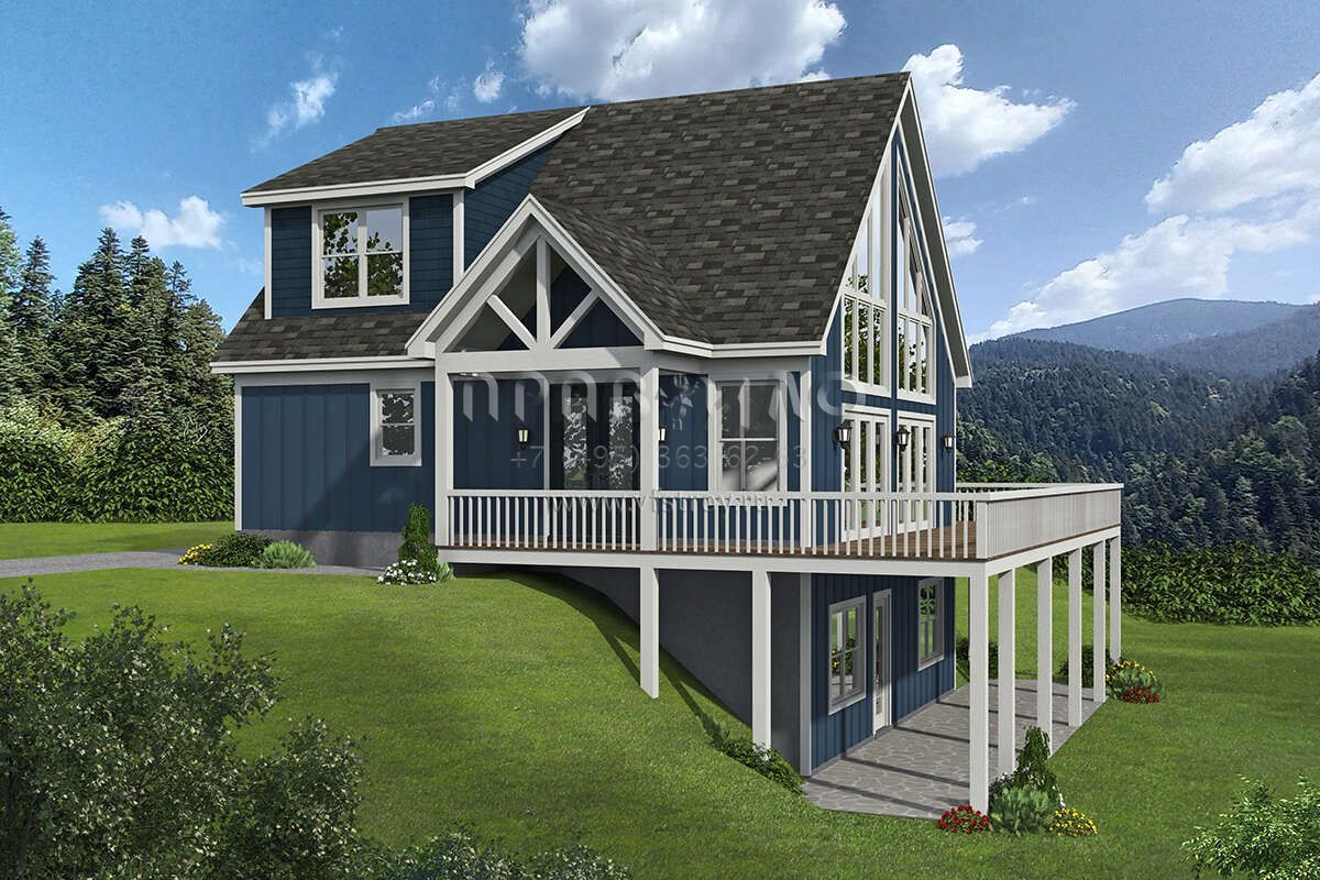 Проект двухэтажного дома без гаража в стиле Шале S5-150 (940-00429)