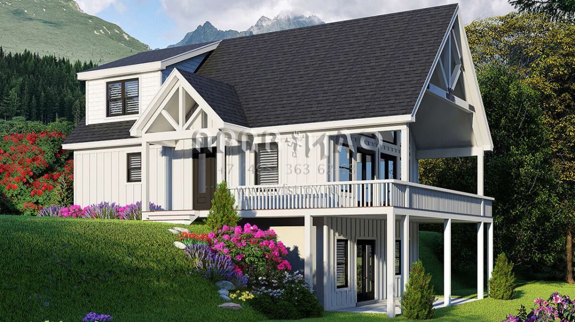 Проект двухэтажного дома без гаража в стиле Шале S5-150 (940-00846)