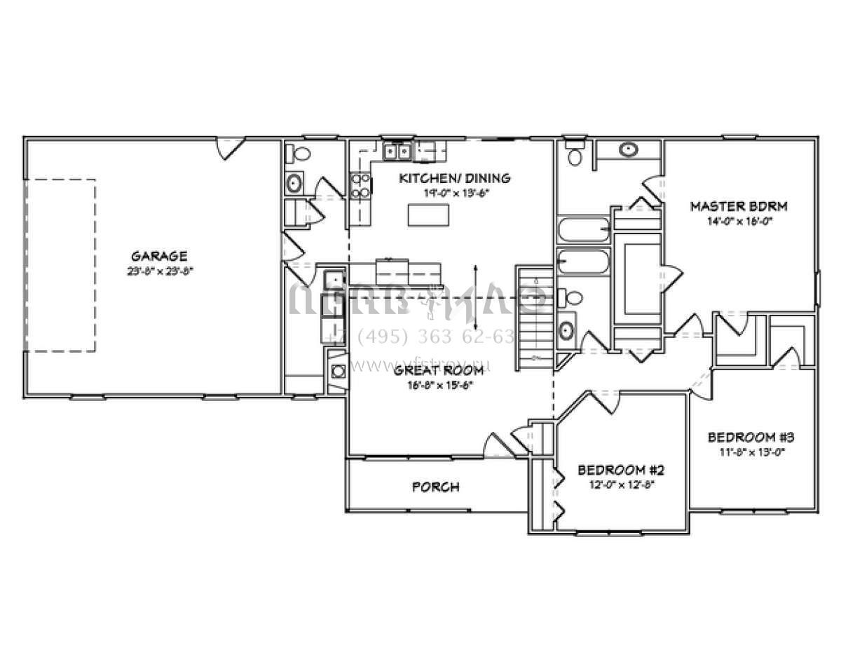 Проект одноэтажного дома с гаражом на две машины в стиле Ранчо S5-151 (849-00054)