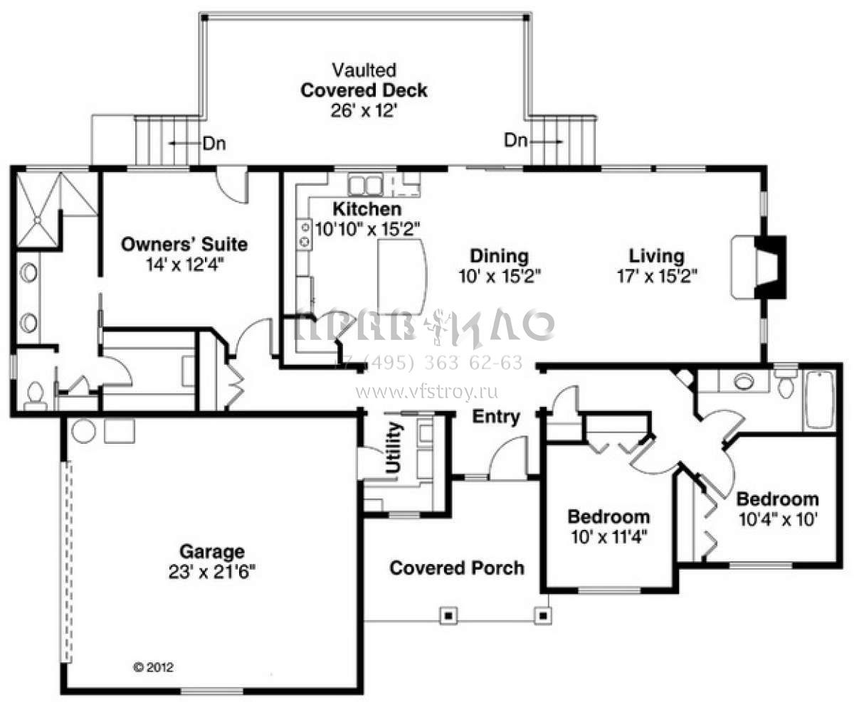 Проект одноэтажного дома с гаражом на две машины в стиле Ранчо S5-152 (035-00609)