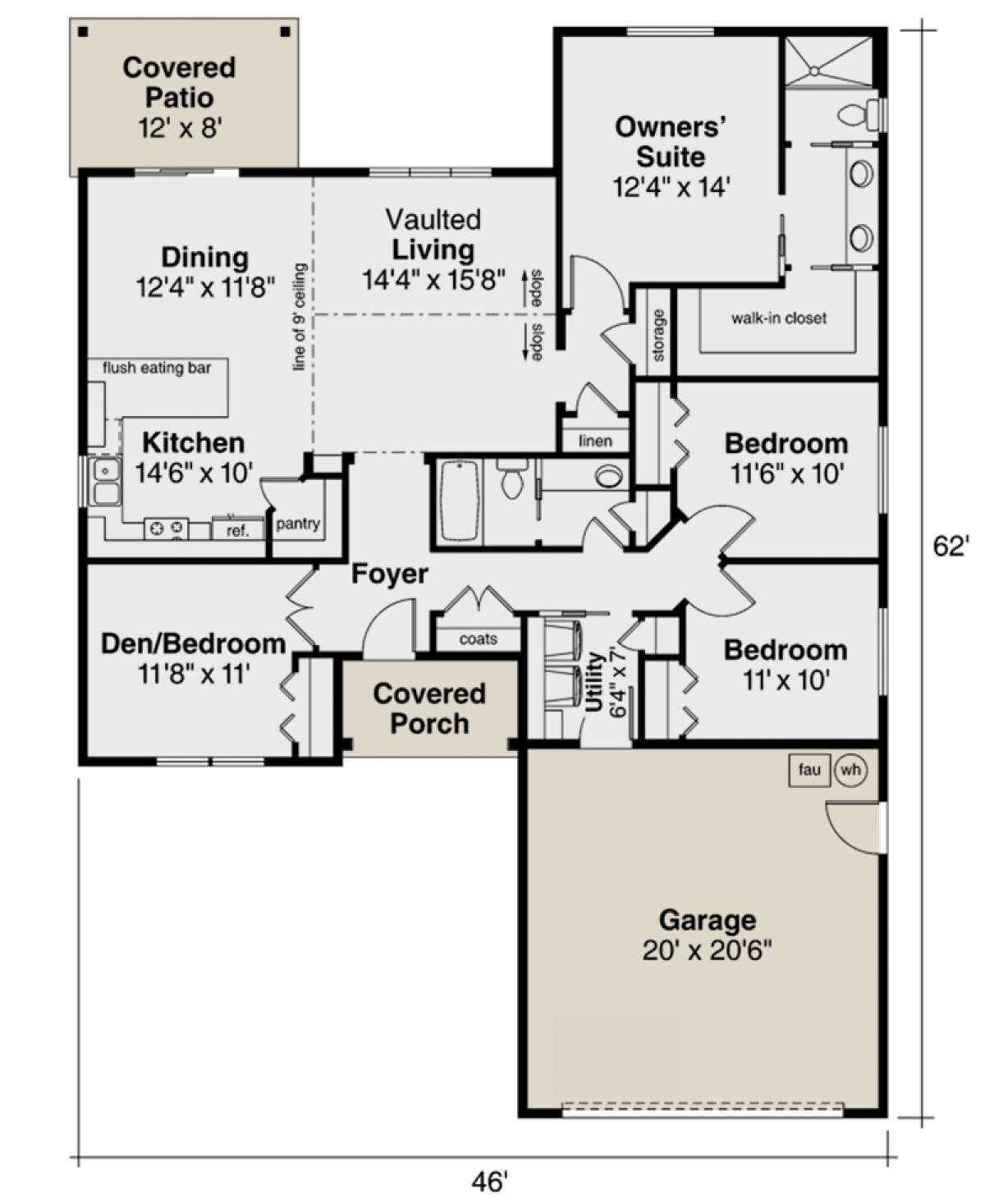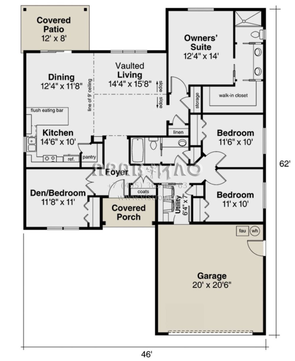 Проект одноэтажного дома с гаражом на две машины в стиле Ранчо S5-152 (035-00690)
