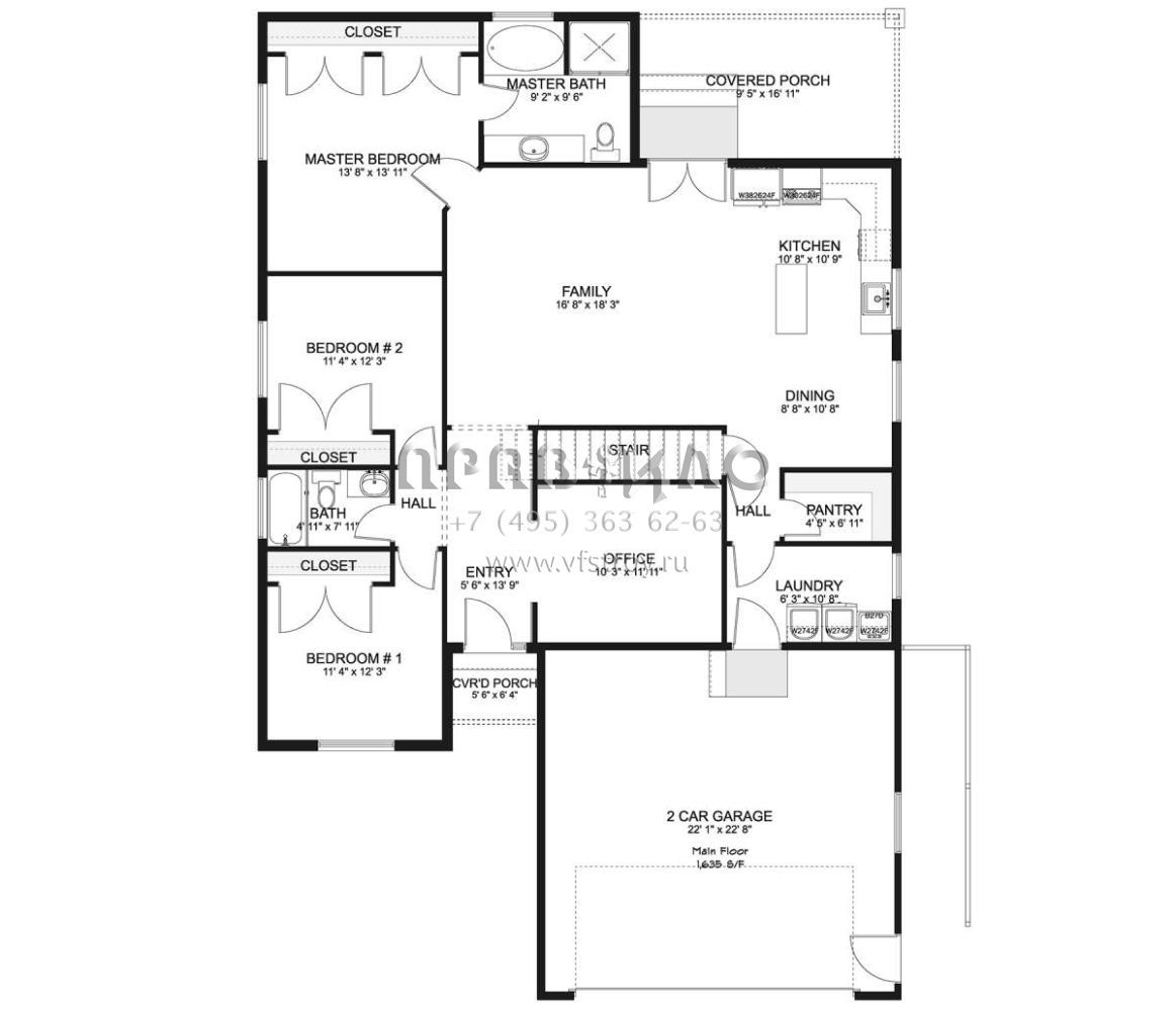 S5-152 (2802-00035) Это иностранный проект, для которого требуется адаптация под нормы, действующие в Российской Федерации. Вы видите проект дома в стиле Ранчо. В этом доме сочетаются черты сельской постройки и аскетичность лофта. Внутри жильцы смогут проводить время с максимальным комфортом. Обратим внимание, что сейчас на планировках все размеры представлены в футах. Для перевода в метры вам необходимо значение в футах умножить на 0,3048.