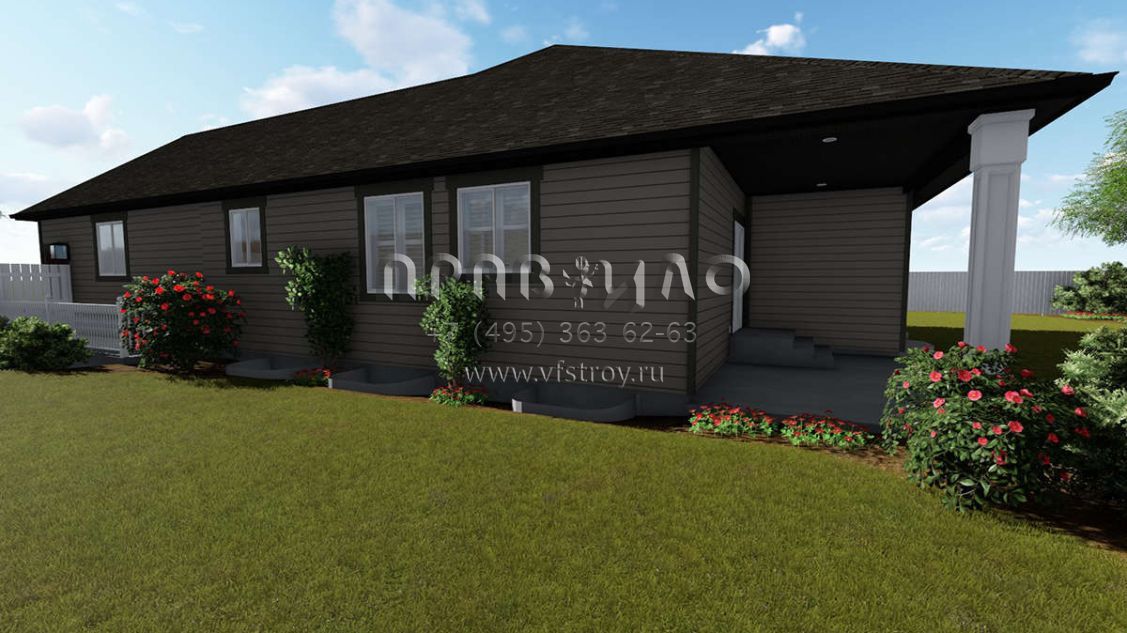 Большая площадь участка позволяет выбрать одноэтажный проект дома, особенно если в семье есть пожилые люди, инвалиды или маленькие дети.