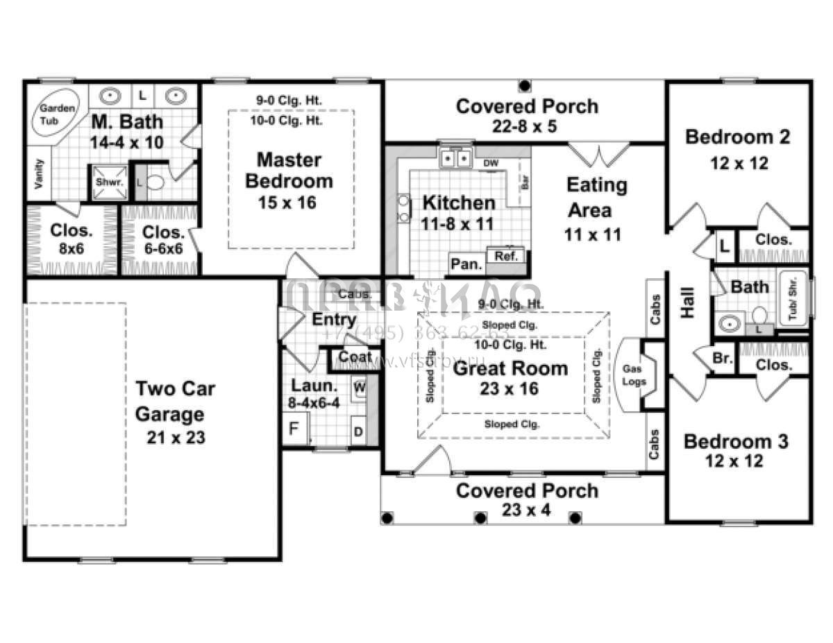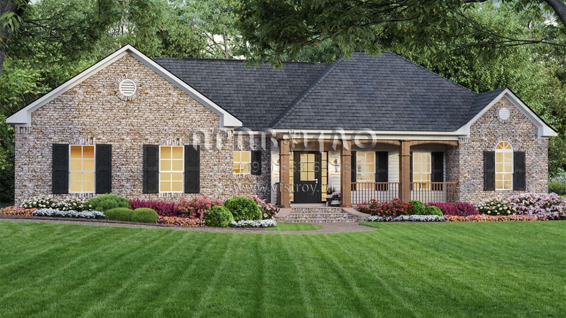 Проект одноэтажного дома с гаражом на две машины в стиле Ранчо S5-152 (348-00040)