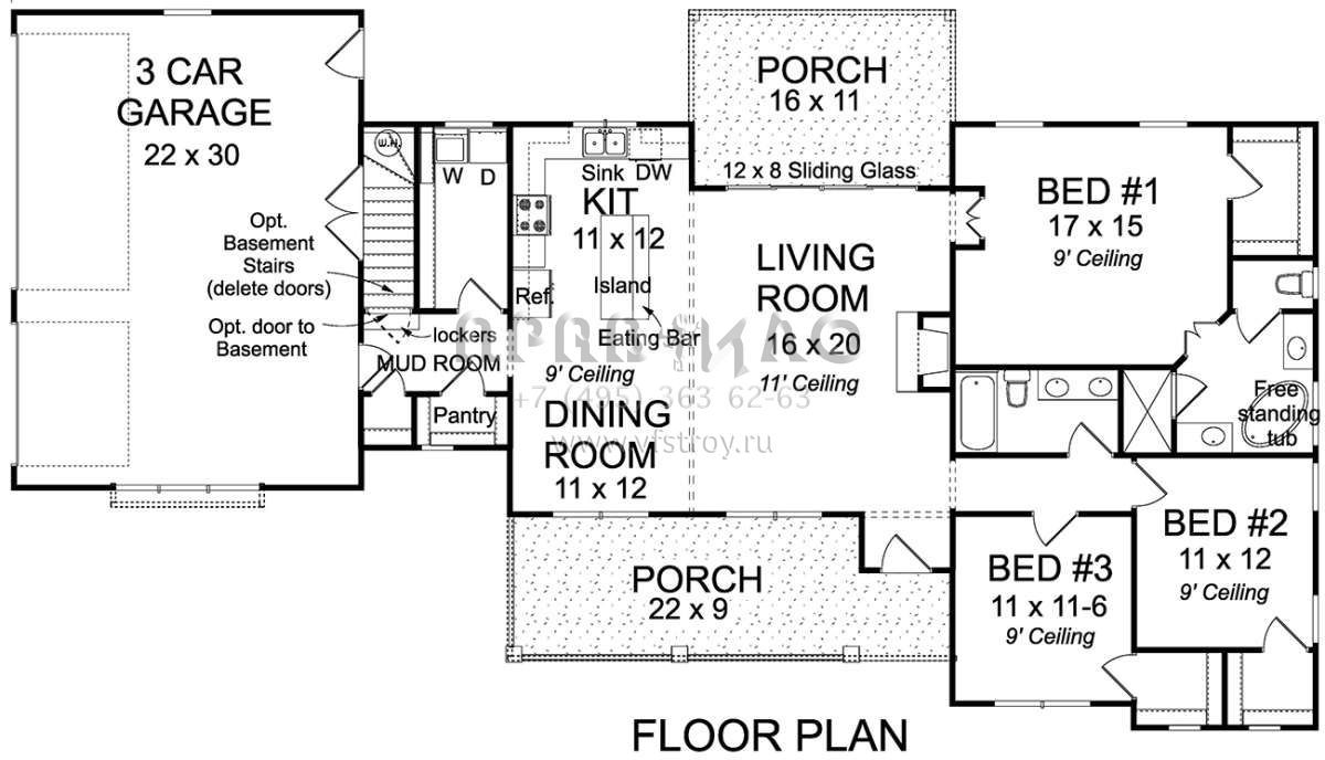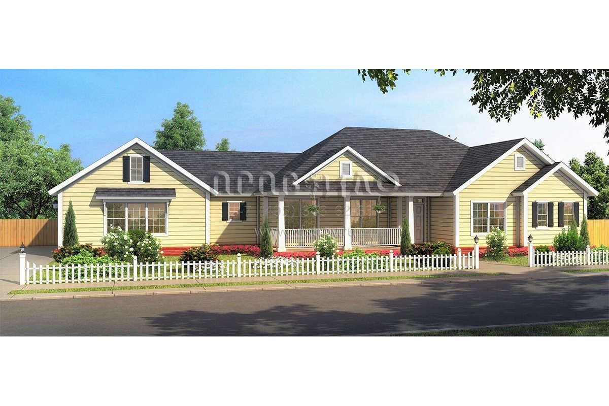 Проект одноэтажного дома с гаражом на три и более машин в американском стиле S5-152 (4848-00352)