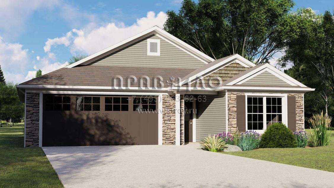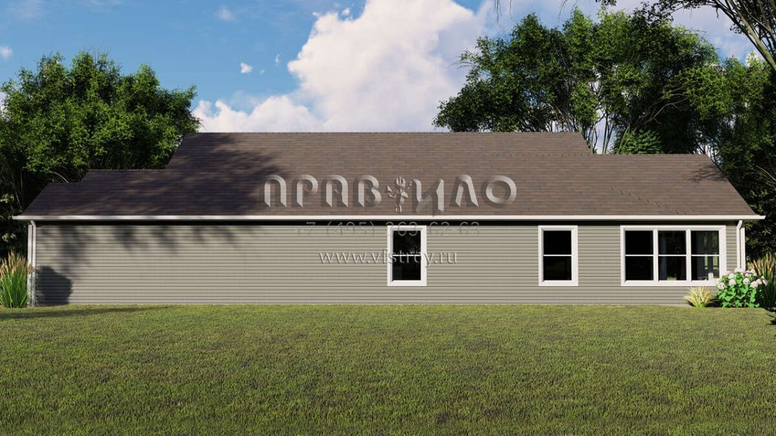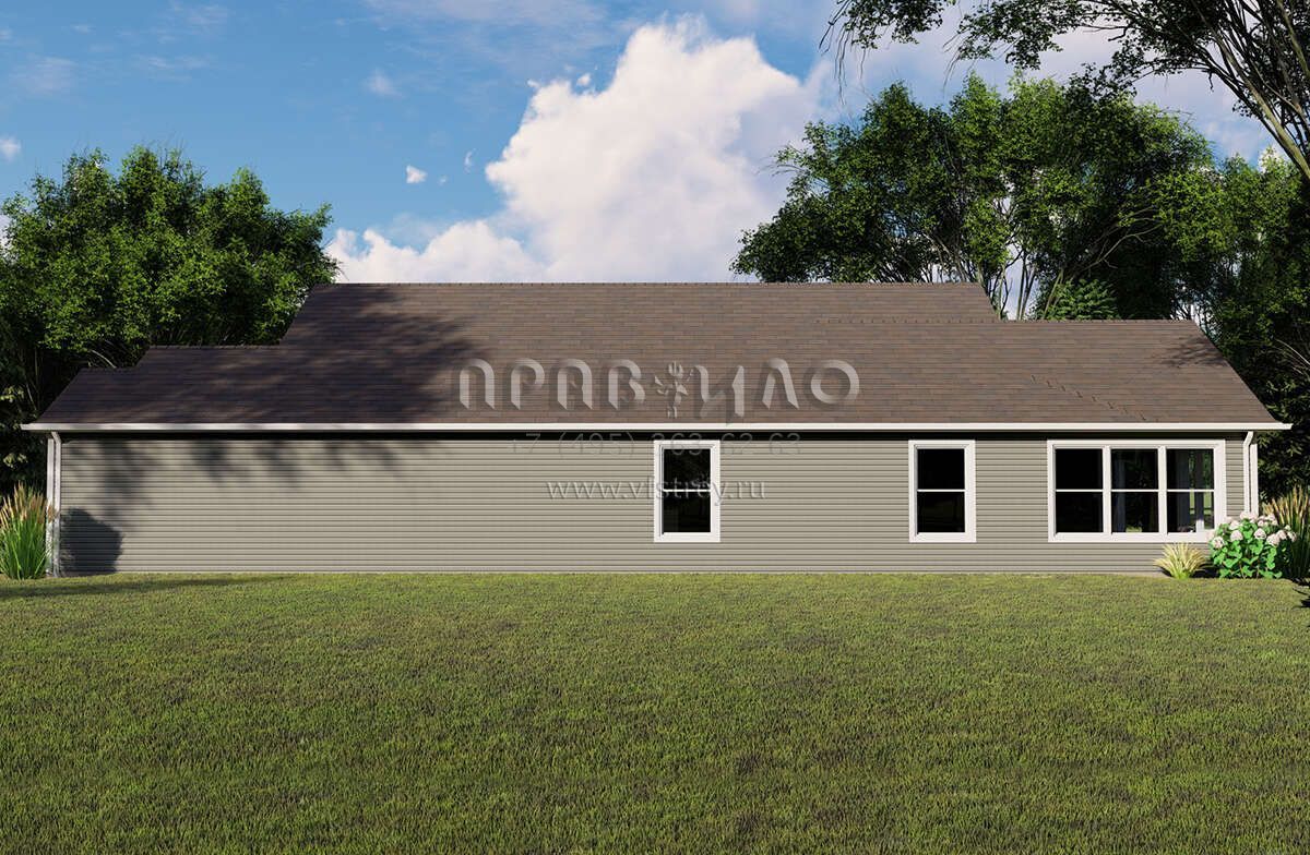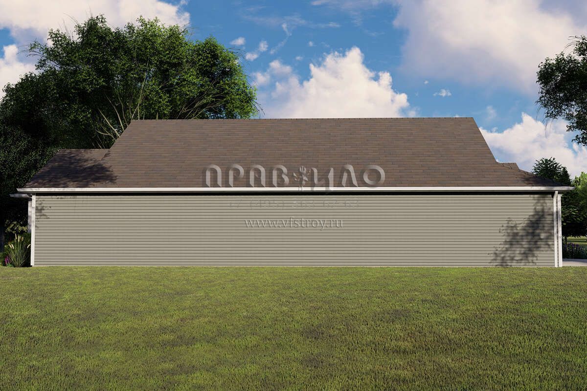 Это проект одноэтажного дома с гаражом на две машины жилой площадью 152 кв.м. Длина дома 19.8 м, ширина 11.6 м, высота 5.5 м. В доме две спальни и два санузла.