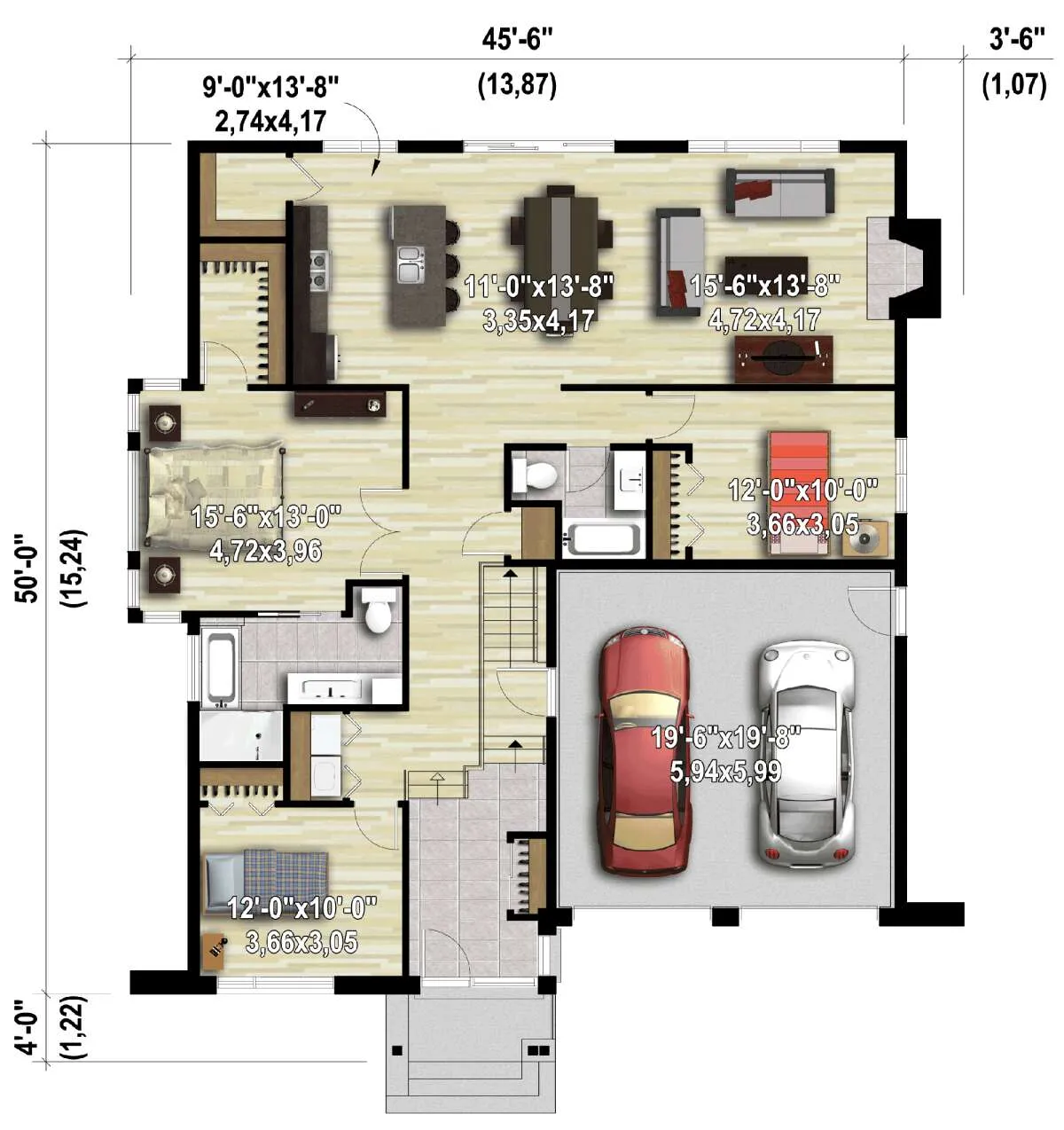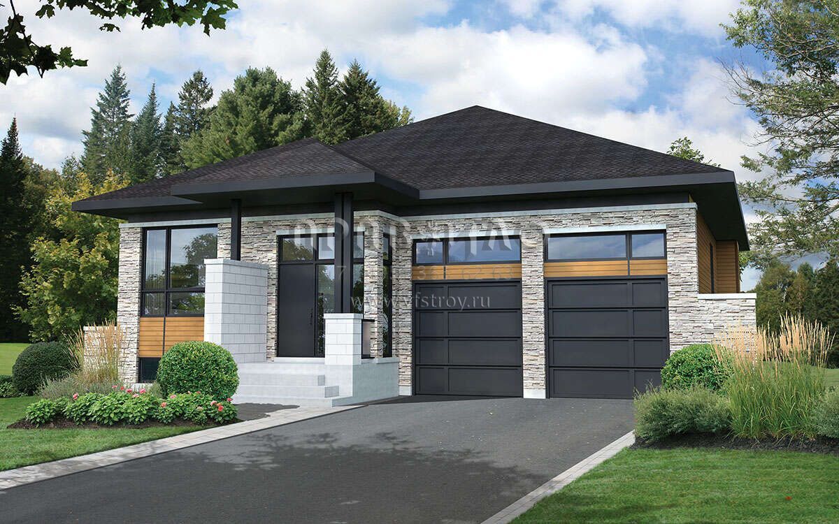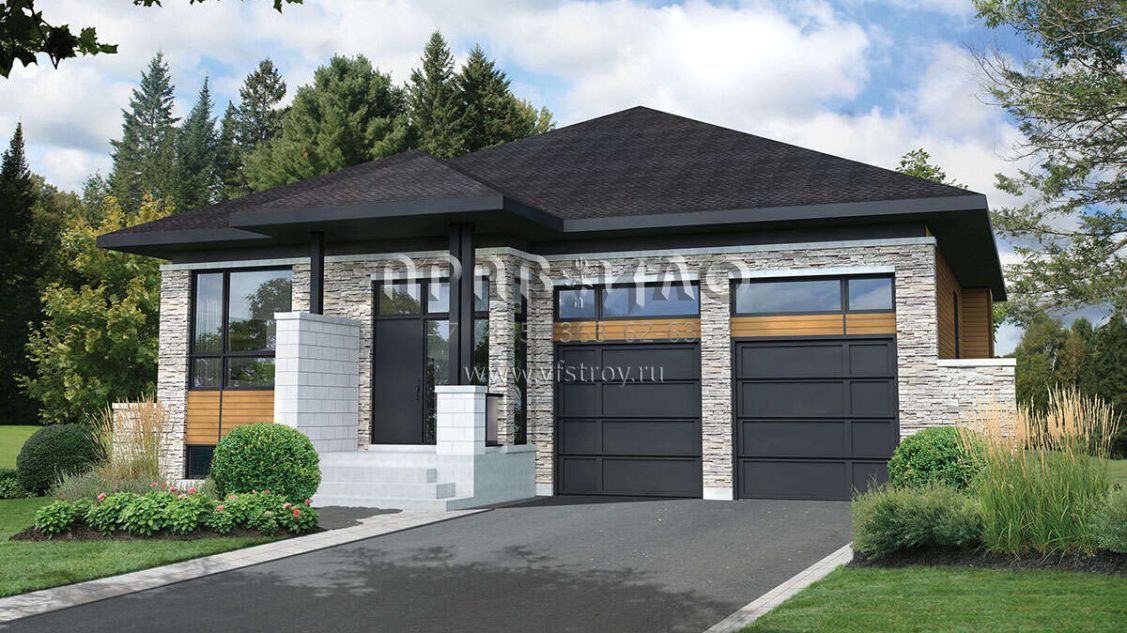 Проект одноэтажного дома с гаражом на две машины в современном стиле S5-152 (6146-00591)