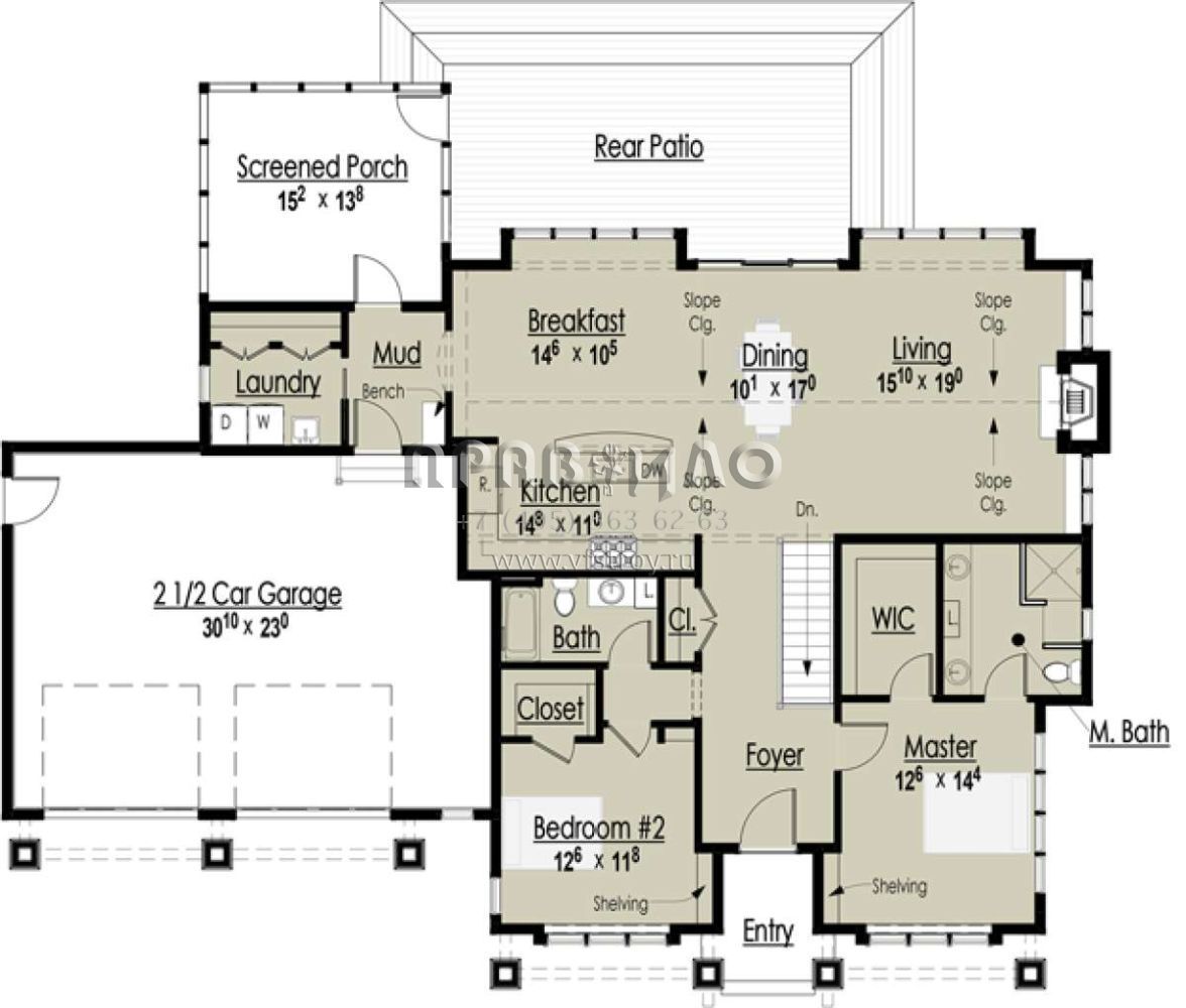 Проект одноэтажного дома с гаражом на две машины в стиле Ранчо S5-152 (7806-00019)