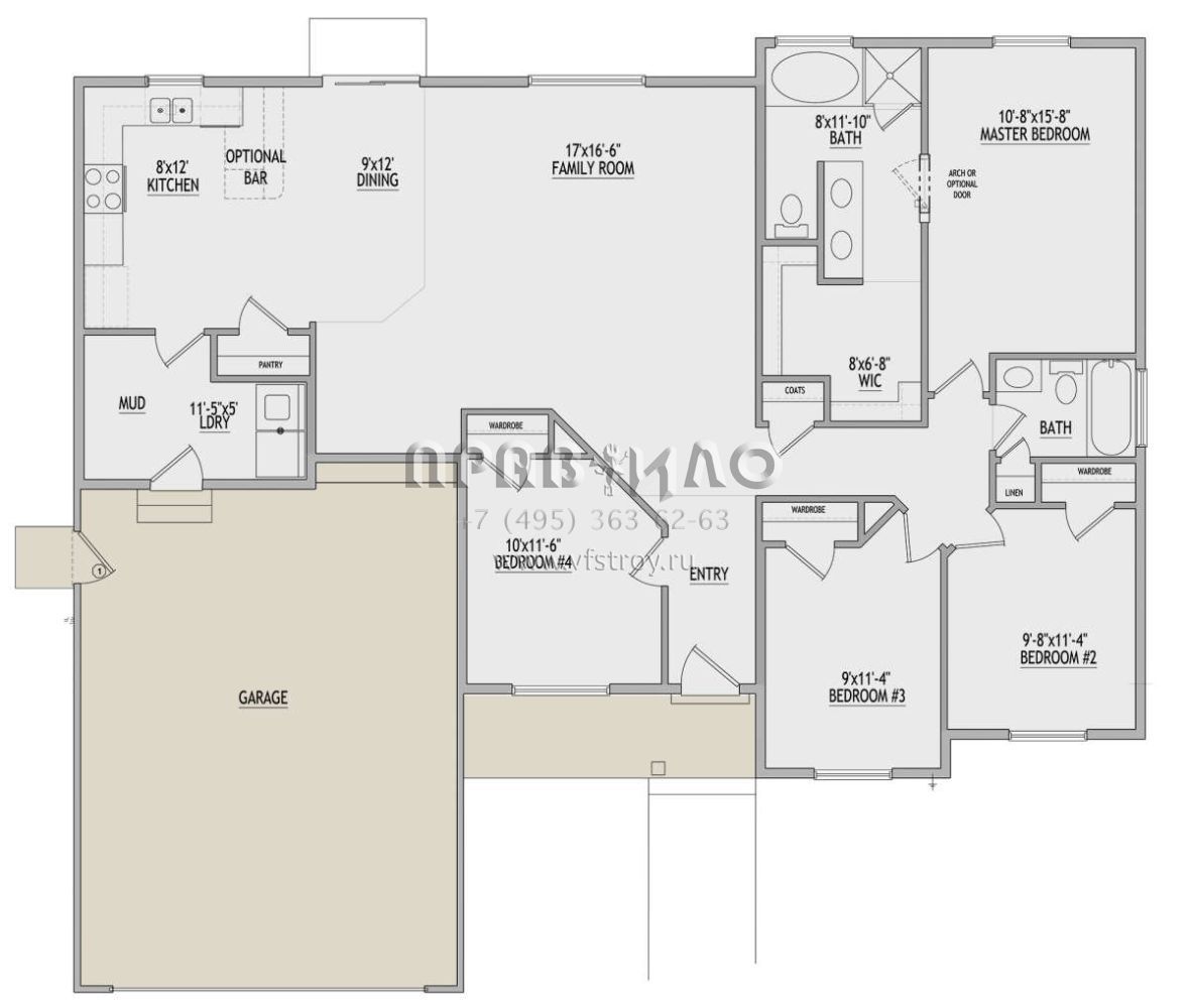 Проект одноэтажного дома с гаражом на две машины в стиле Ранчо S5-152 (8768-00133)