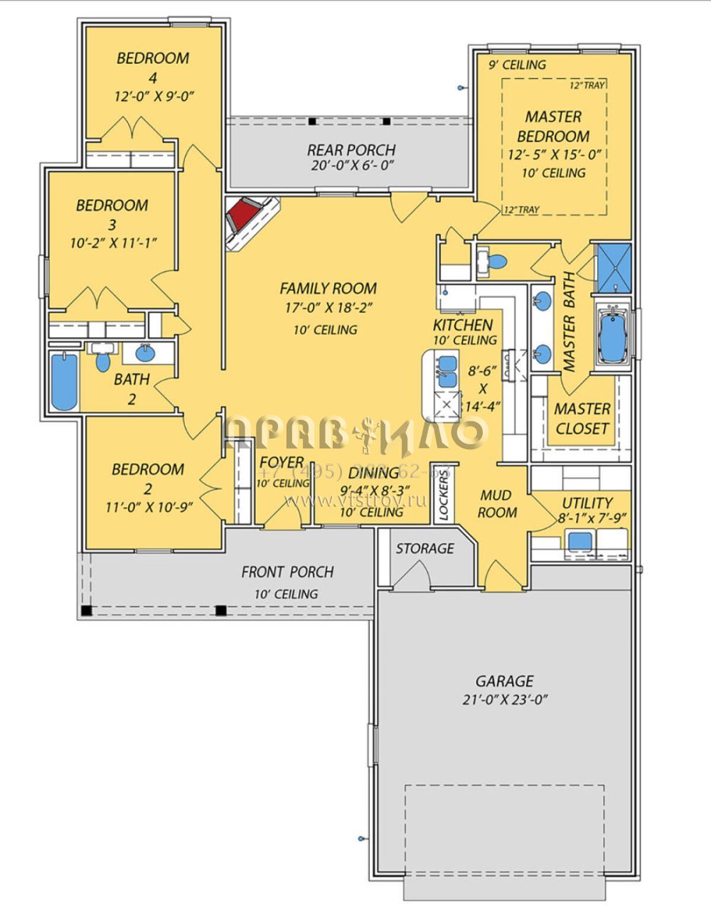 Проект одноэтажного дома с гаражом на две машины в стиле Ранчо S5-152 (9279-00050)