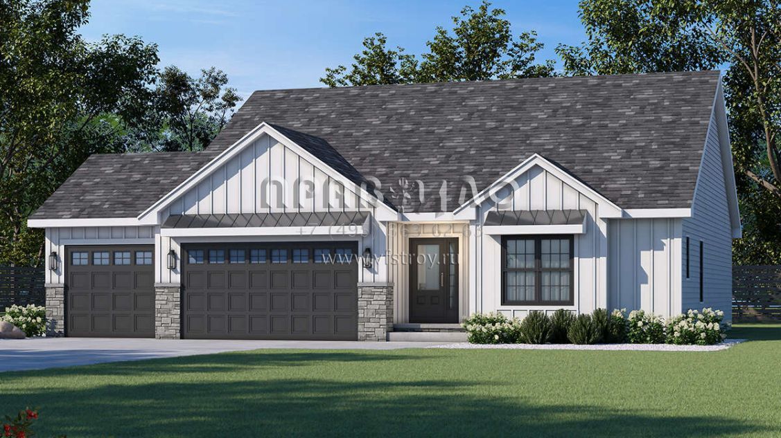 Проект одноэтажного дома с гаражом на три и более машин в американском стиле S5-153 (402-01806)