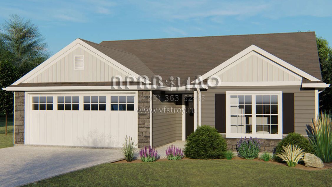 Проект одноэтажного дома с гаражом на две машины в стиле Ранчо S5-153 (5032-00048)