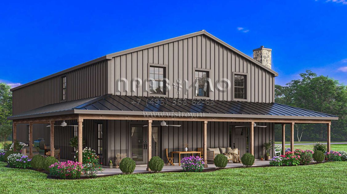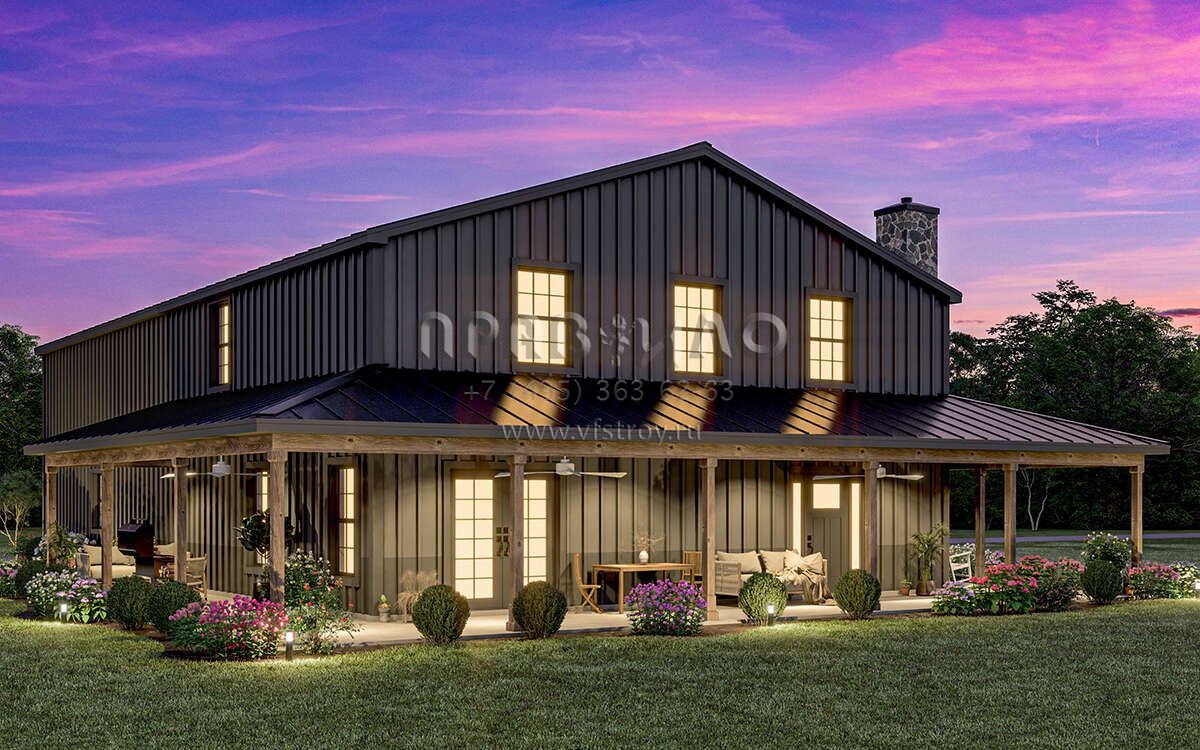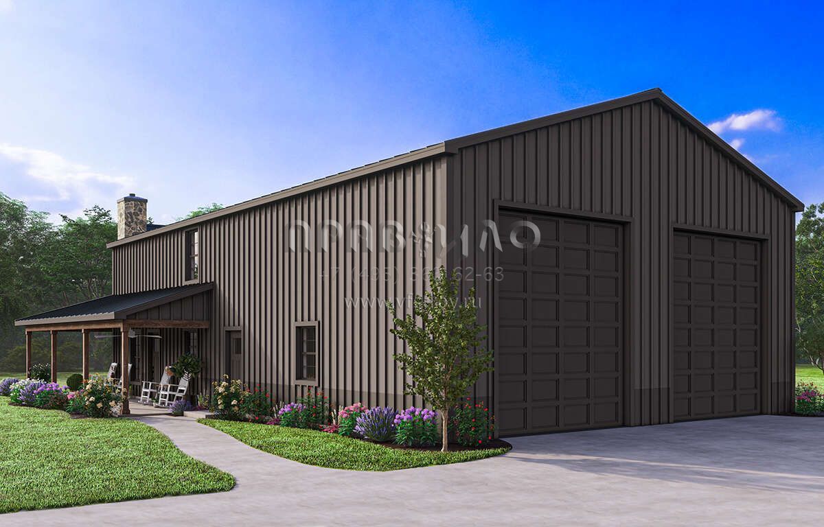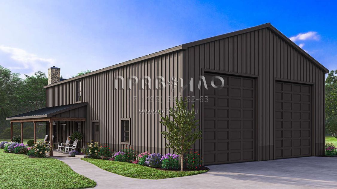 Проект двухэтажного дома с гаражом на две машины в стиле БарнХаус S5-153 (5032-00218)