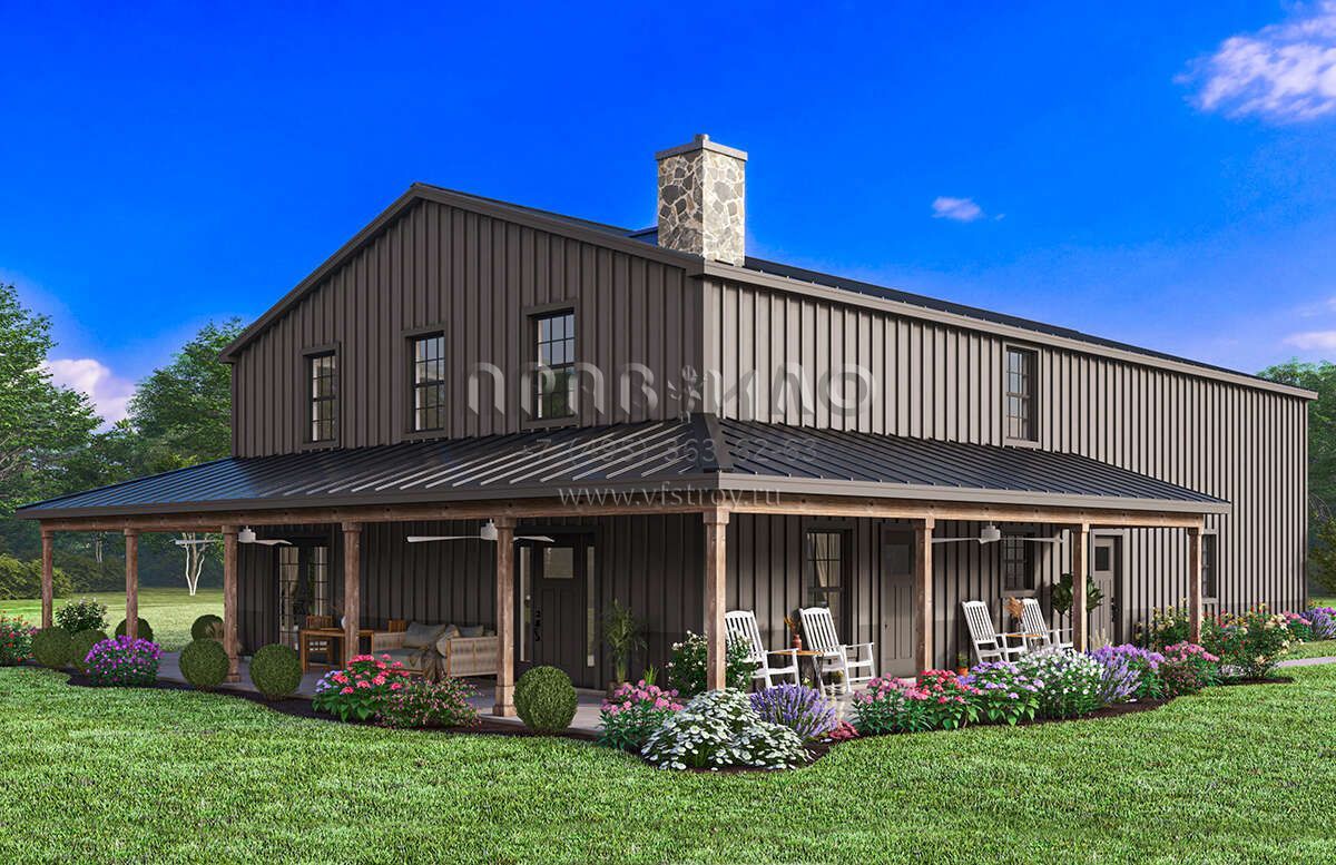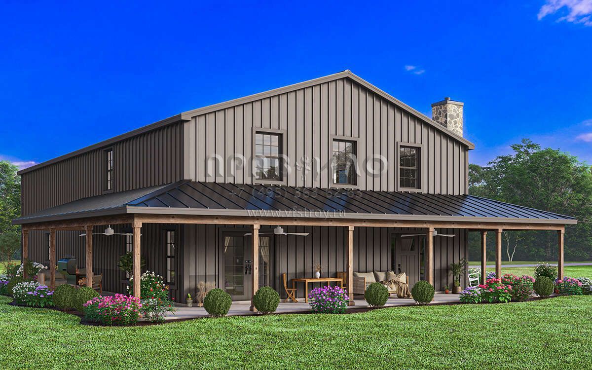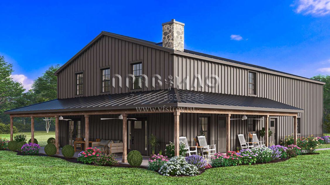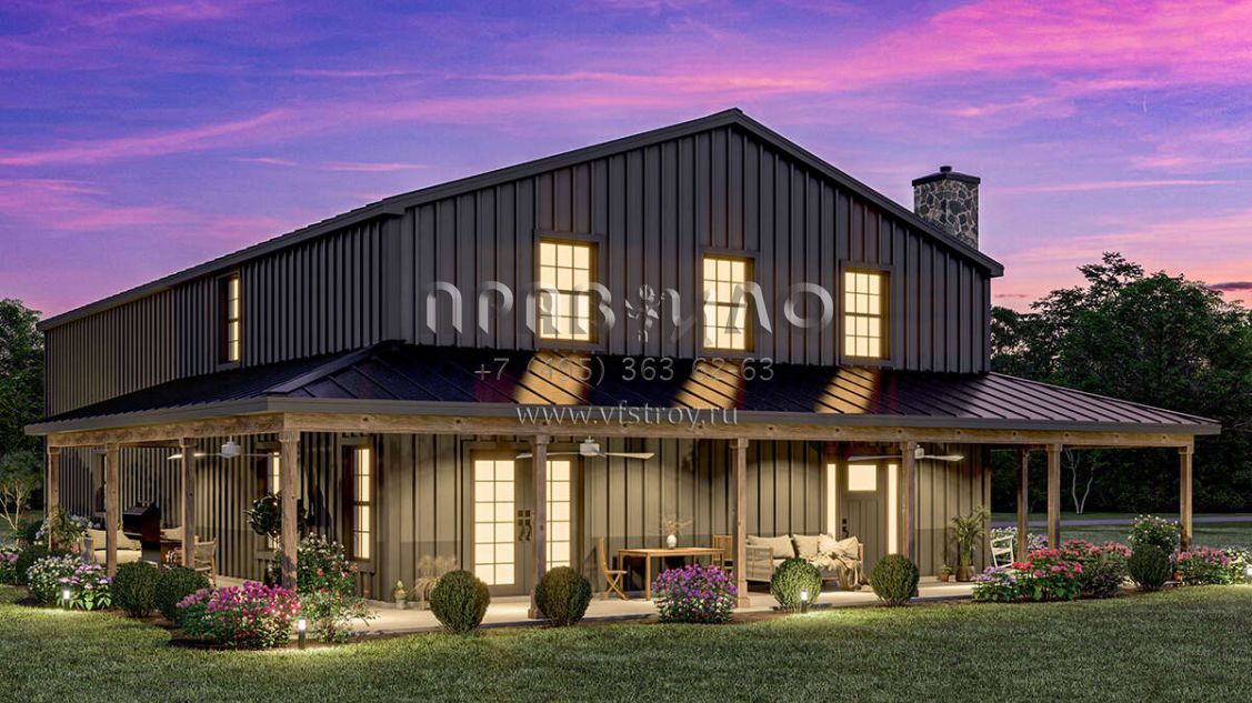 Проект двухэтажного дома с гаражом на две машины в стиле БарнХаус S5-153 (5032-00218)