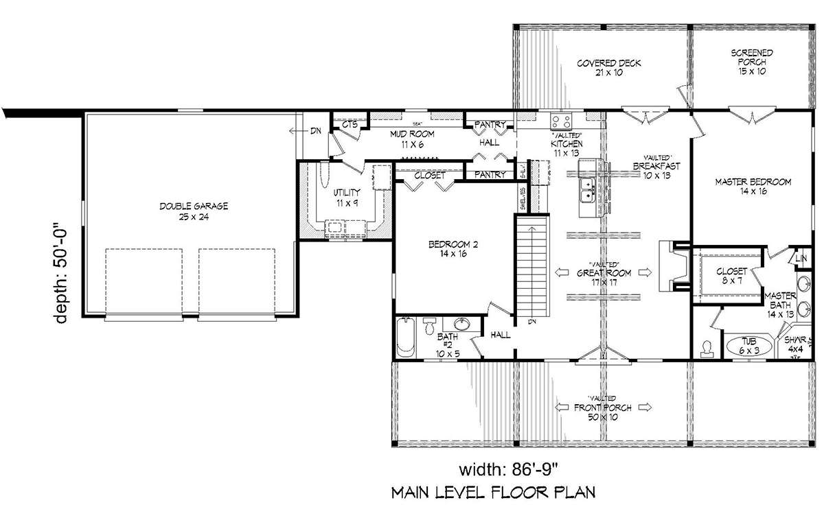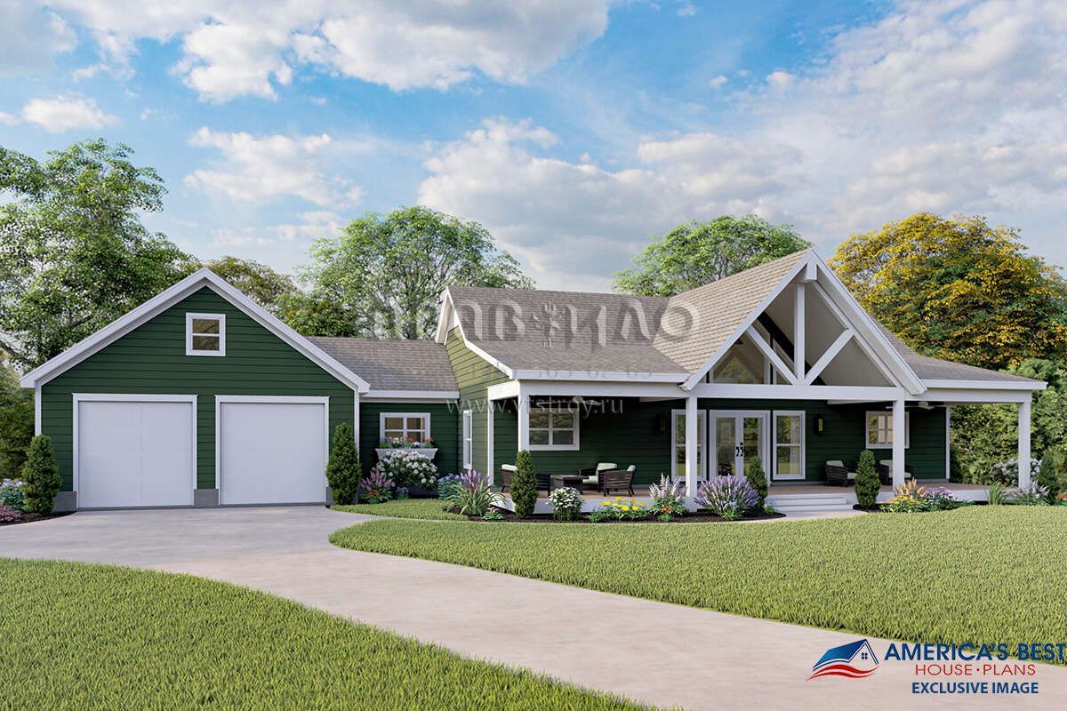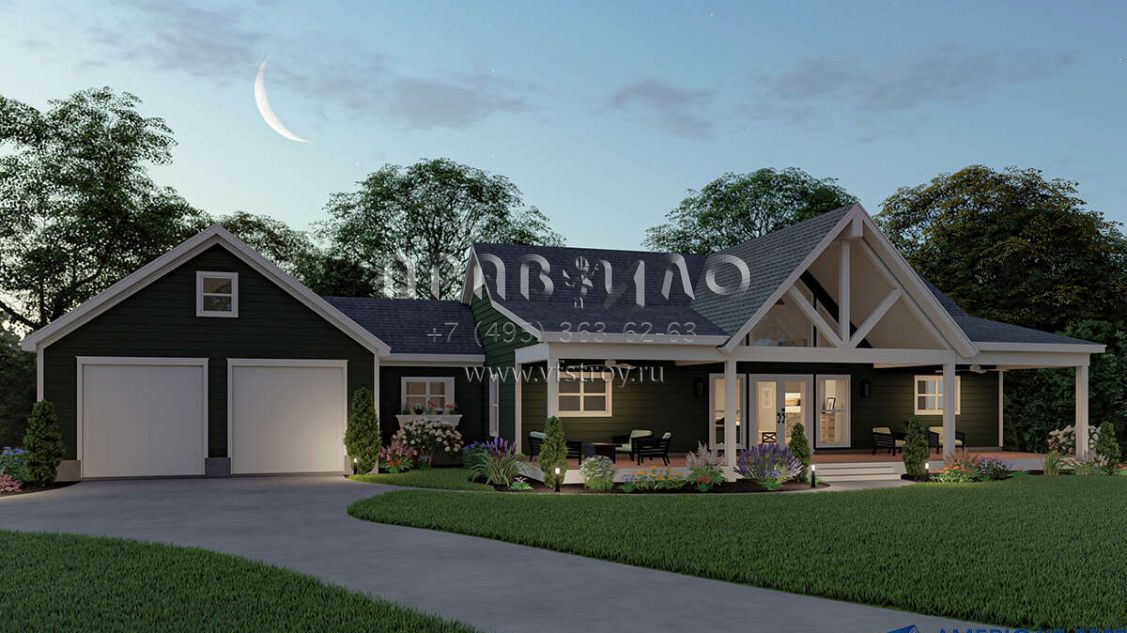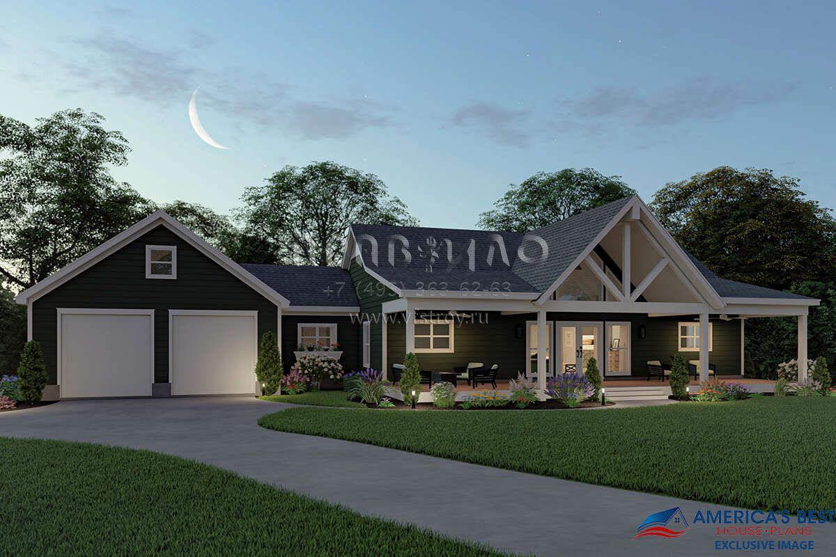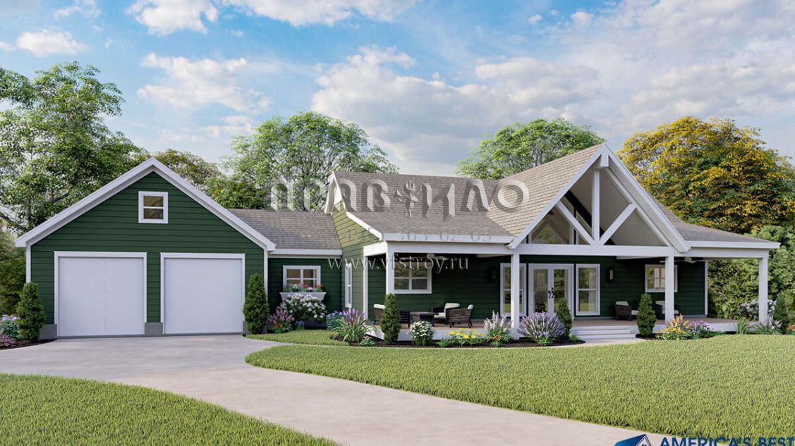 Проект одноэтажного дома с гаражом на две машины в стиле Ранчо S5-153 (940-00079)