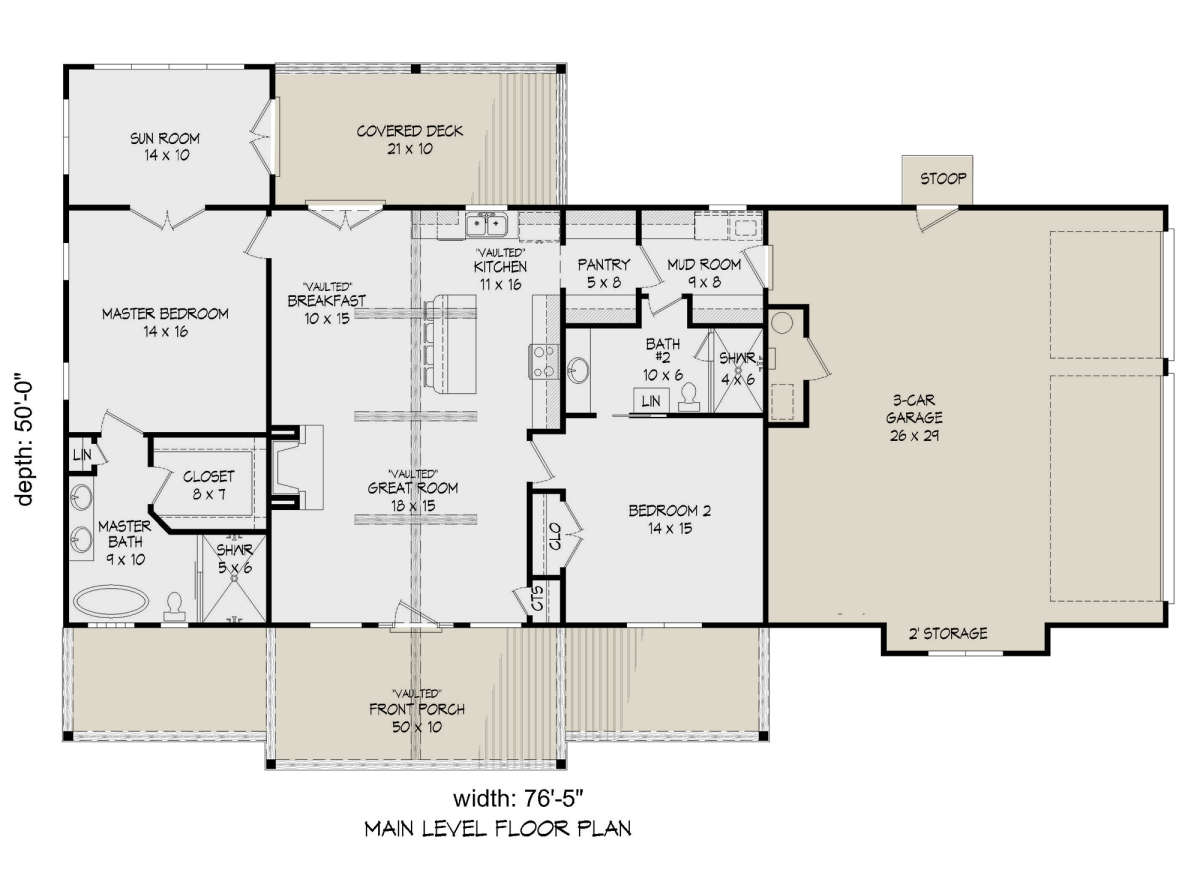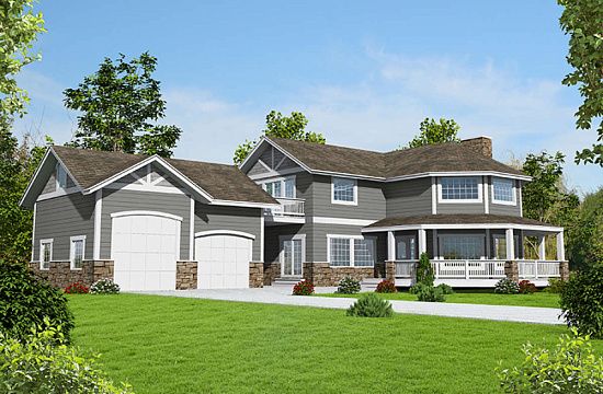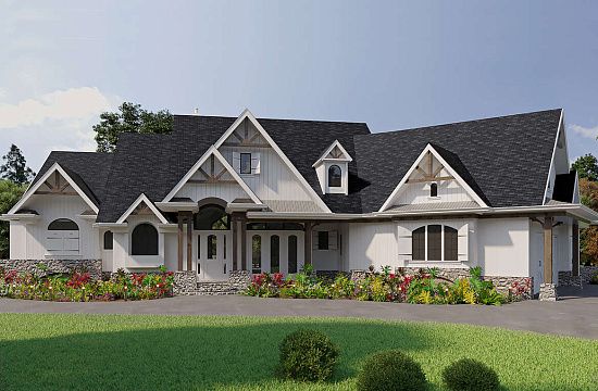 Проект одноэтажного дома с гаражом на три и более машин в стиле Ранчо S5-153 (940-00199)