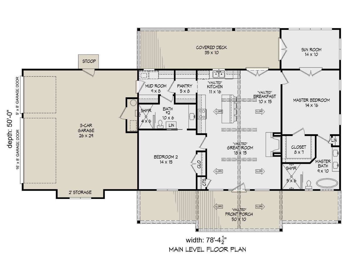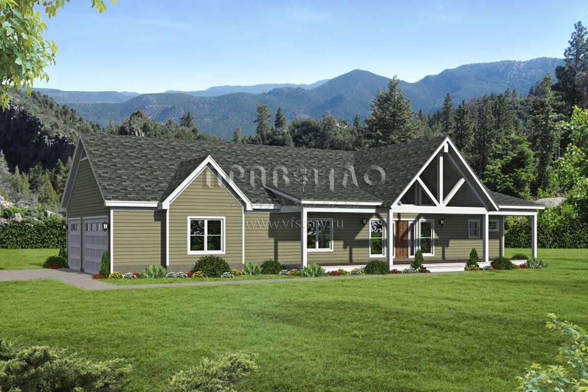 Проект одноэтажного дома с гаражом на три и более машин в стиле Ранчо S5-153 (940-00607)