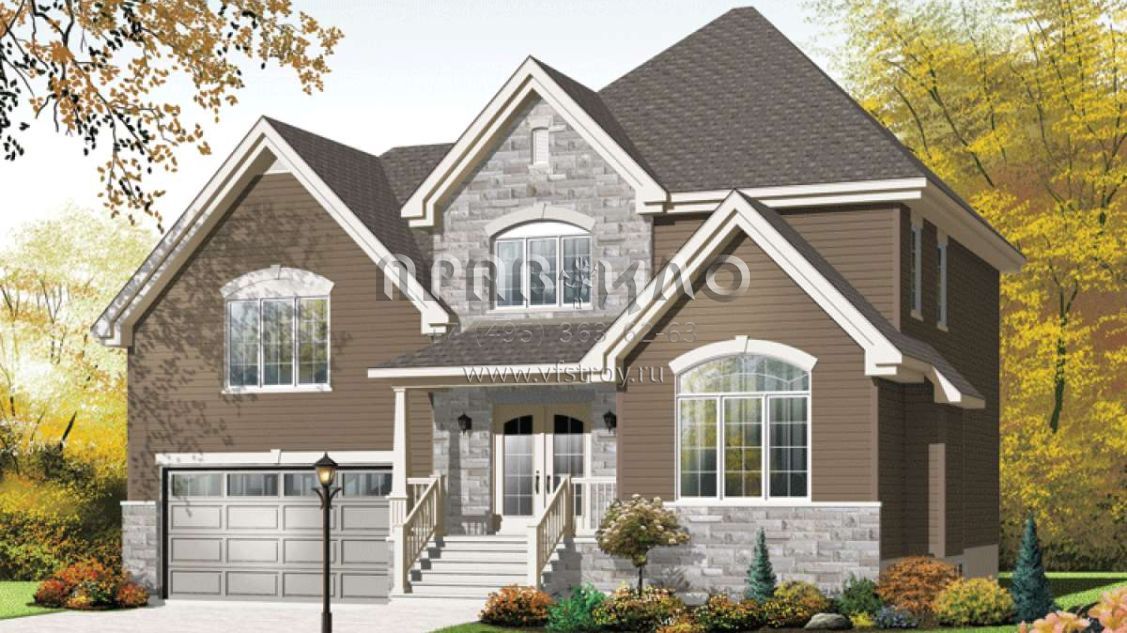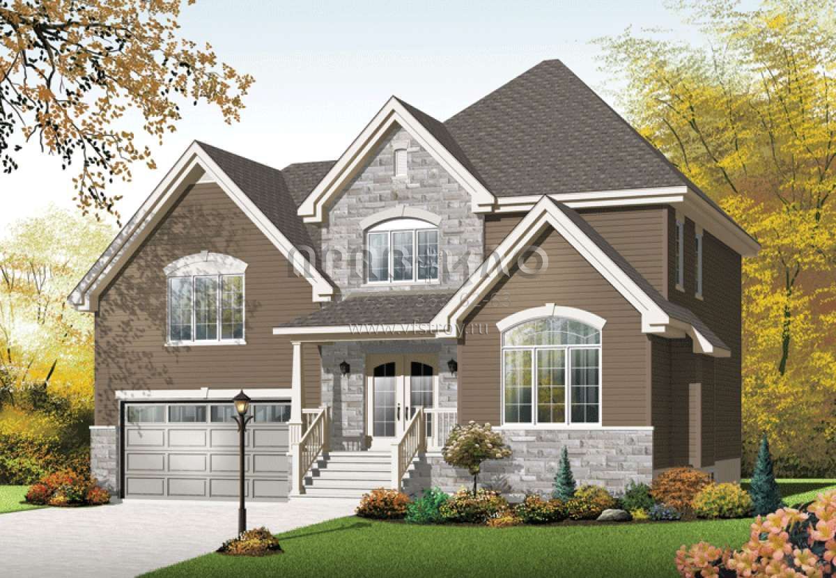 Проект двухэтажного дома с гаражом на две машины в английском стиле S5-154 (034-00988)