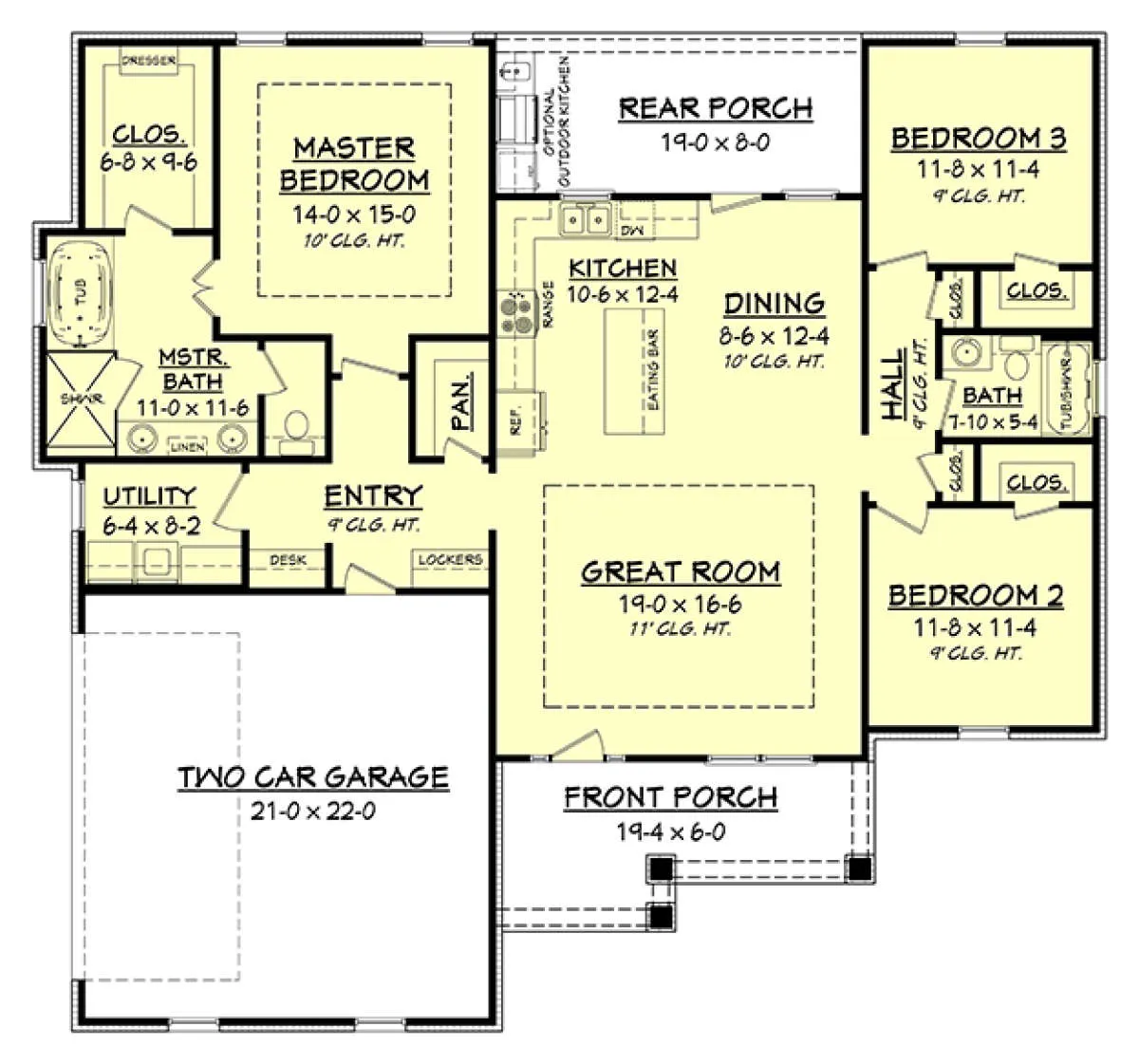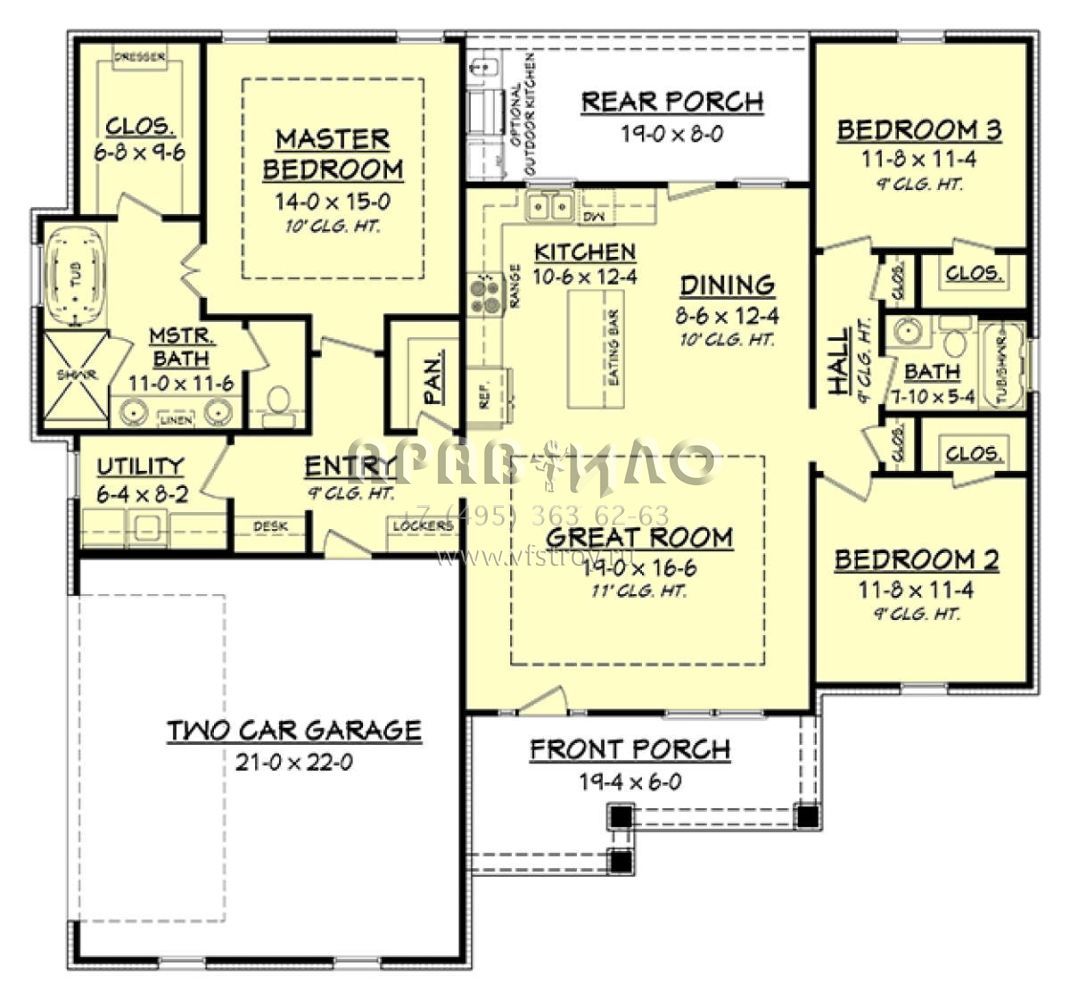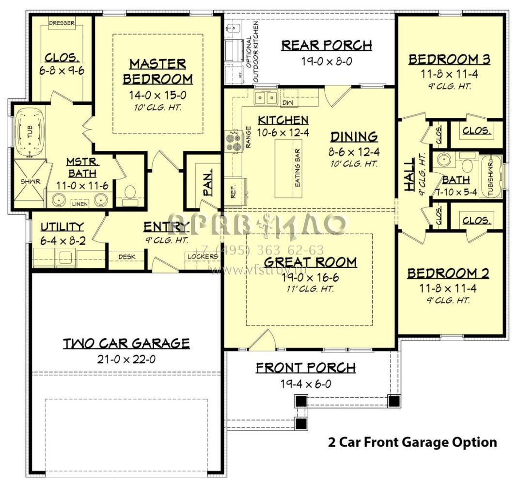 Проект одноэтажного дома с гаражом на две машины в американском стиле S5-154 (041-00153)