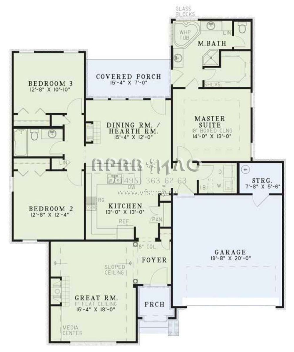 Проект одноэтажного дома с гаражом на две машины в стиле Ранчо S5-154 (110-00204)