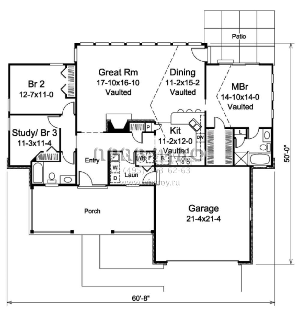 Проект одноэтажного дома с гаражом на две машины в стиле Ранчо S5-154 (5633-00191)
